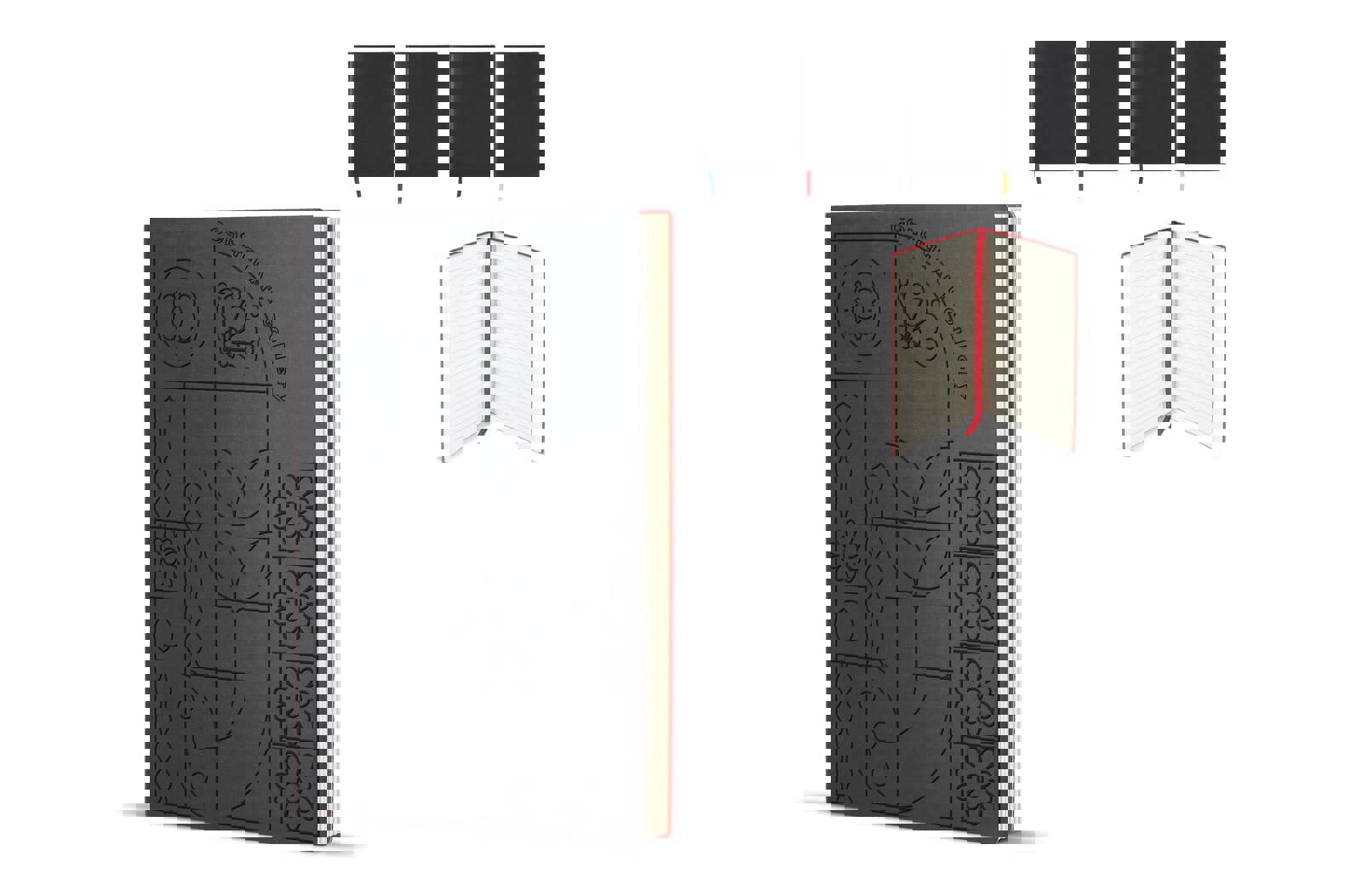 V notranjosti boste našli 144 črtastih strani (72 listov) iz visokokakovostnega papirja, kot nalašč za zapisovanje, beleženje ali načrtovanje. Premišljene funkcije, kot so ujemajoč elastični trak za zapiranje, zaznamek s trakom in držalo za pisalo zagotavljajo, da bodo vaši zapiski vedno organizirani in dostopni.