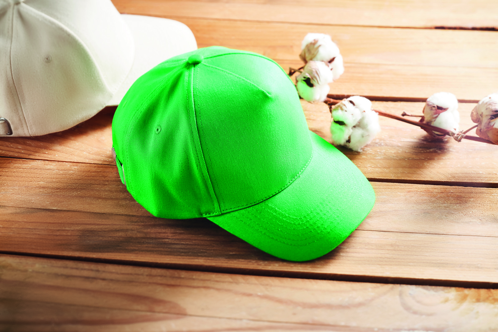 5 panel baseball cap in 250 gr/m² organic brushed cotton with metal adjustable strap back buckle closure.