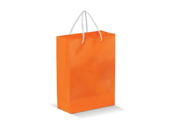 Papirnata vrečka 180x80x240 mm, sijajna, ročaji iz vrvi - Oranžna