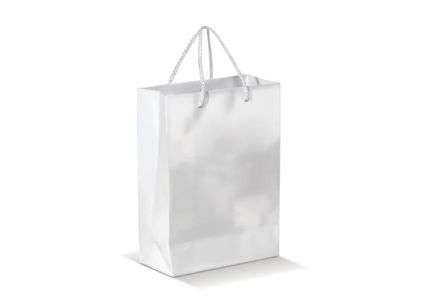 Papirnata vrečka 180x80x240 mm, sijajna, ročaji iz vrvi - Bela