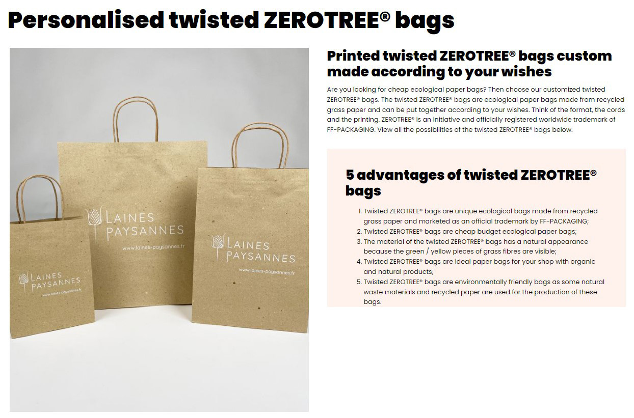 Papirnate vrečke po meri, po želji. Na voljo tudi ZEROTREE. ----- Možnosti in cene vam bomo sporočili na podlagi vašega povpraševanja, ki ga lahko pošljete na robert@promoluks.com ali preko spodnjega obrazca. ------ Med slikami si lahko ogledate nekaj najbolj prodajanih variant.