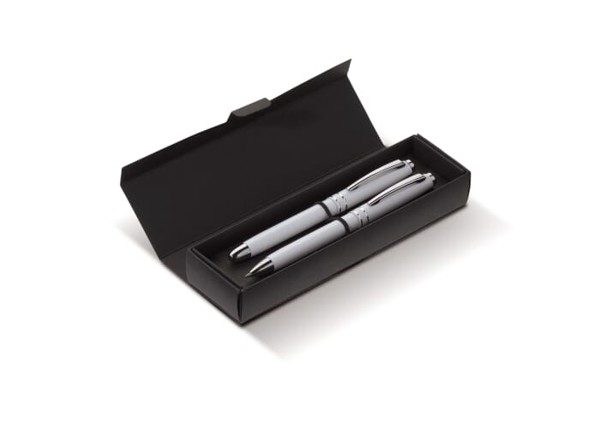 Pen set 2 stripes barrel metal - White