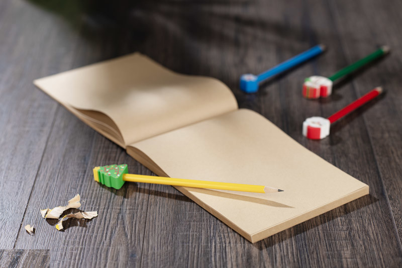 The CHRISTMAS pencil is a festive gift in yellow, finished with an eraser in the shape of a Christmas tree. The cheerful, colourful accent gives it a seasonal touch and captures the attention of little ones. Ideal as an addition to Santa sets, advent calendars or as a small promotional gadget during the festive season.