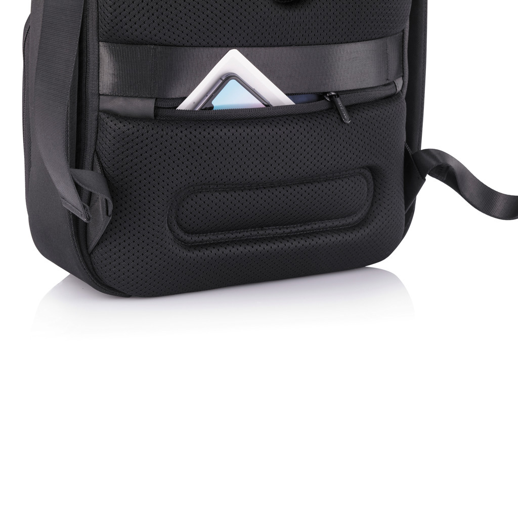 Ta nahrbtnik je zasnovan s skritimi zadrgami, zaščito pred urezninami in skritimi predelki, zato med vsakodnevnimi prevozi na delo in domov varuje dragocenosti. Vgrajena polnilna vrata USB zagotavljajo, da bodo naprave ves dan napajane. Ima pametno notranjo postavitev z oblazinjenimi rokavi za zaščito 13,3-palčnega prenosnika in tabličnega računalnika do 12,9-palčnega formata, ki ponuja profesionalno organizacijo v elegantnem formatu.