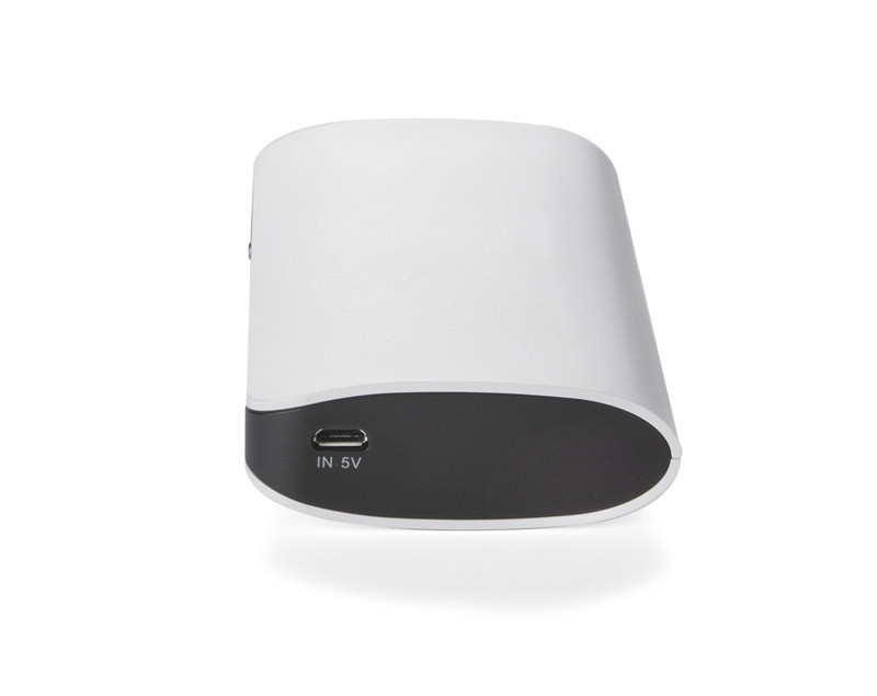 Kompaktna litijeva baterija z močjo1.000 mAh, ki shranjena v lahkem aluminijastem ohišju z obeskom za ključe. Ima varnostno rezervno baterijo za polnjenje telefona, ki zdrži do 50%. Izhod USB s 5V / 1A omogoča uporabo na kateri koli mobilni napravi. Izhod 5V / 1A, vhod 5V / 1A