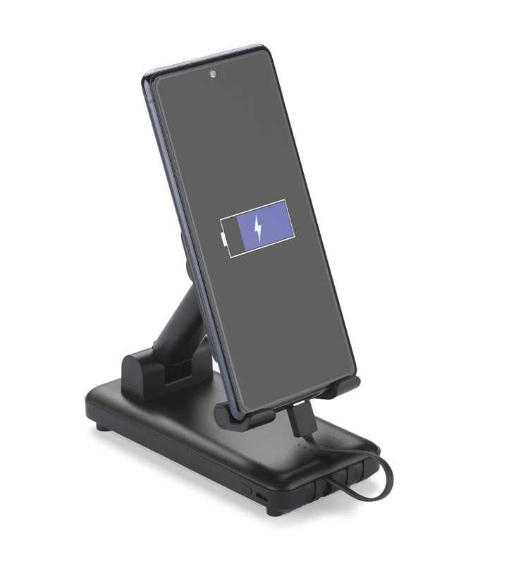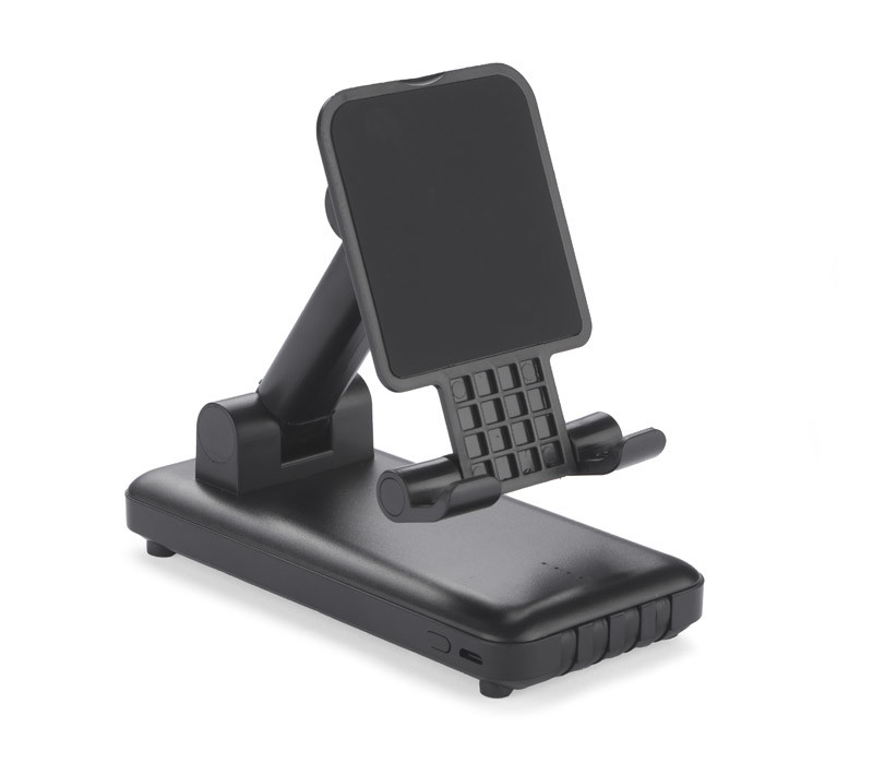 "The SEGURO power bank is a unique combination of a phone stand with a portable battery. Thanks to this, you can conveniently use the phone while cooking or working, charging it at the same time. On the underside of the device there are USB A / micro USB / USB C and Lightning (Apple) cables for charging both the external device and the power bank itself. The same role is played by 2 inputs on the sides of the USB A and microUSB device. The arm is adjustable in 3 planes, which in combination with the non-slip surface and rubber feet, ensures comfortable and stable use. The product complies with the relevant EU directives, has a CE mark and a 1-year warranty. "