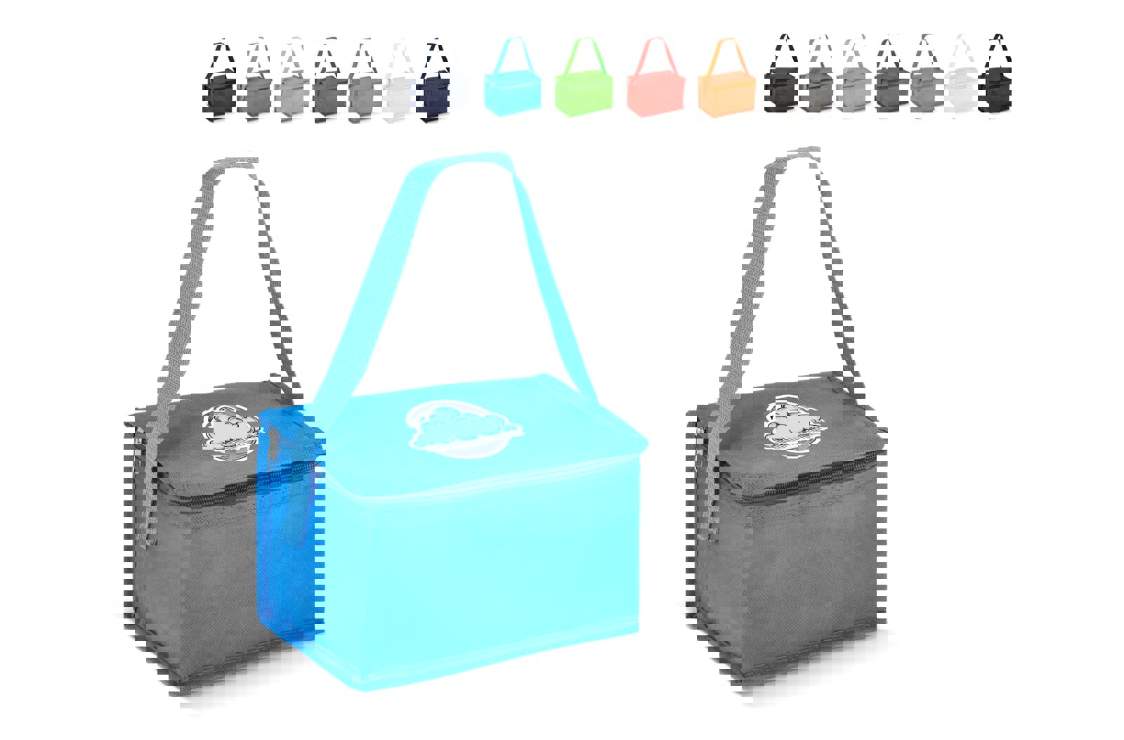 Recycled PET 6-can cooler bag made from 75g/m² non-woven material with aluminium foil lining. Lightweight and practical for keeping drinks cool.