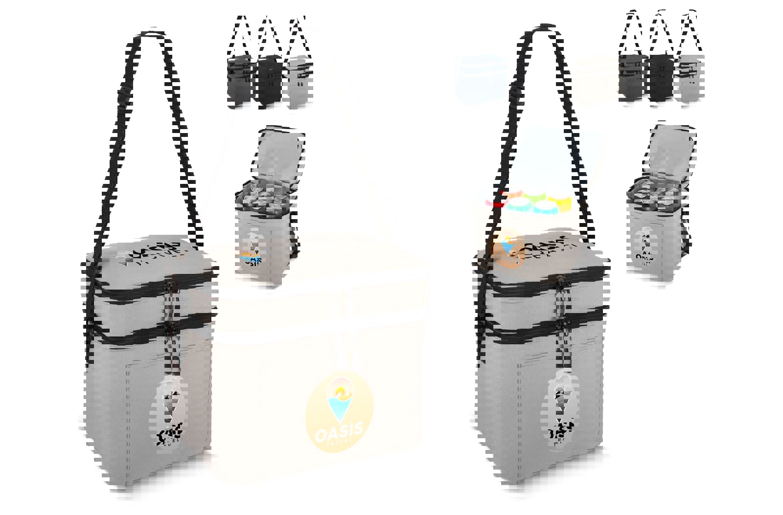Praktična, elegantna in pripravljena na vsako potovanje – potovalna hladilna torba Deluxe iz priznane Zbirke XD je odlično promocijsko darilo za stranke ali sodelavce na poti. Izdelana iz robustnega 600D poliestra in podložena z izolacijskim polietilenom, ta hladilna torba ohranja osvežilne pijače hladne, hkrati pa nudi odlično vzdržljivost za vsakodnevna potovanja ali uporabo v prostem času.