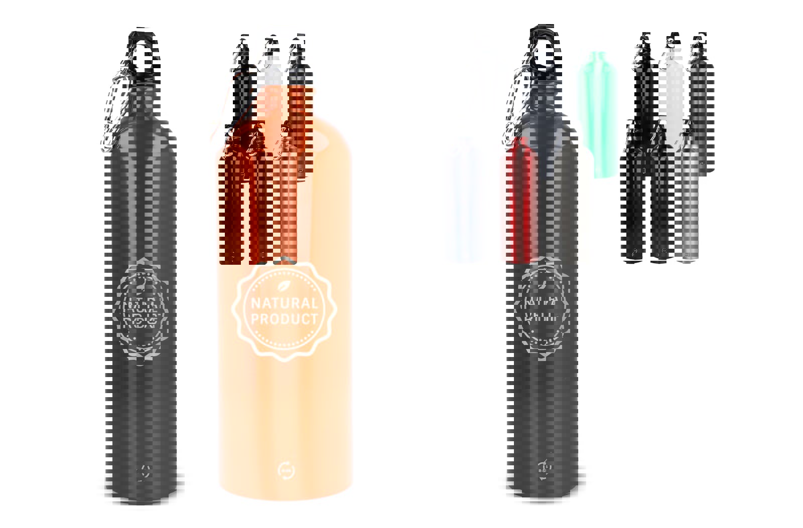A durable single-wall bottle made from recycled stainless steel, featuring a carabiner for easy attachment to bags or gear. The bottle is lightweight, reusable, and ideal for staying hydrated on the go. Comes in various glossy and metallic colours. Comes in a gitfbox.
