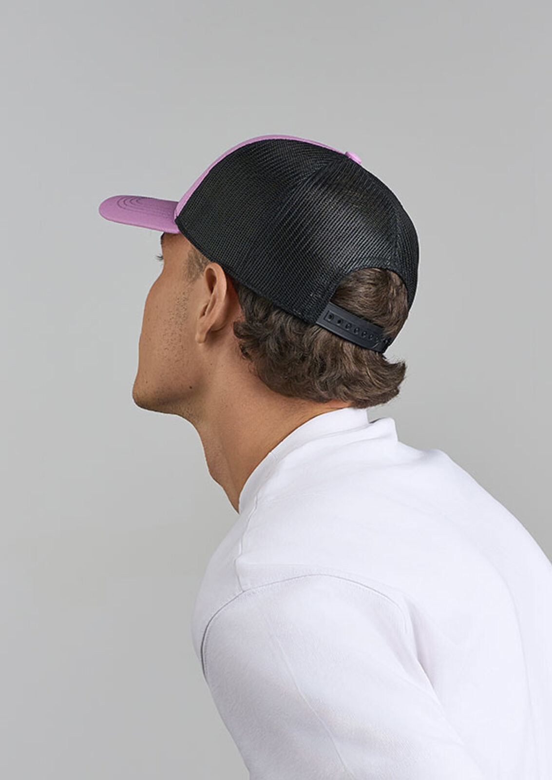 80% organic cotton, 20% recycled cotton. 5-panel hat, canvas and mesh made of environmentally sustainable material, recycled lamination on front panels, snap-back closure, recycled plastic visor interior. Side&back: 100% recycled polyester.