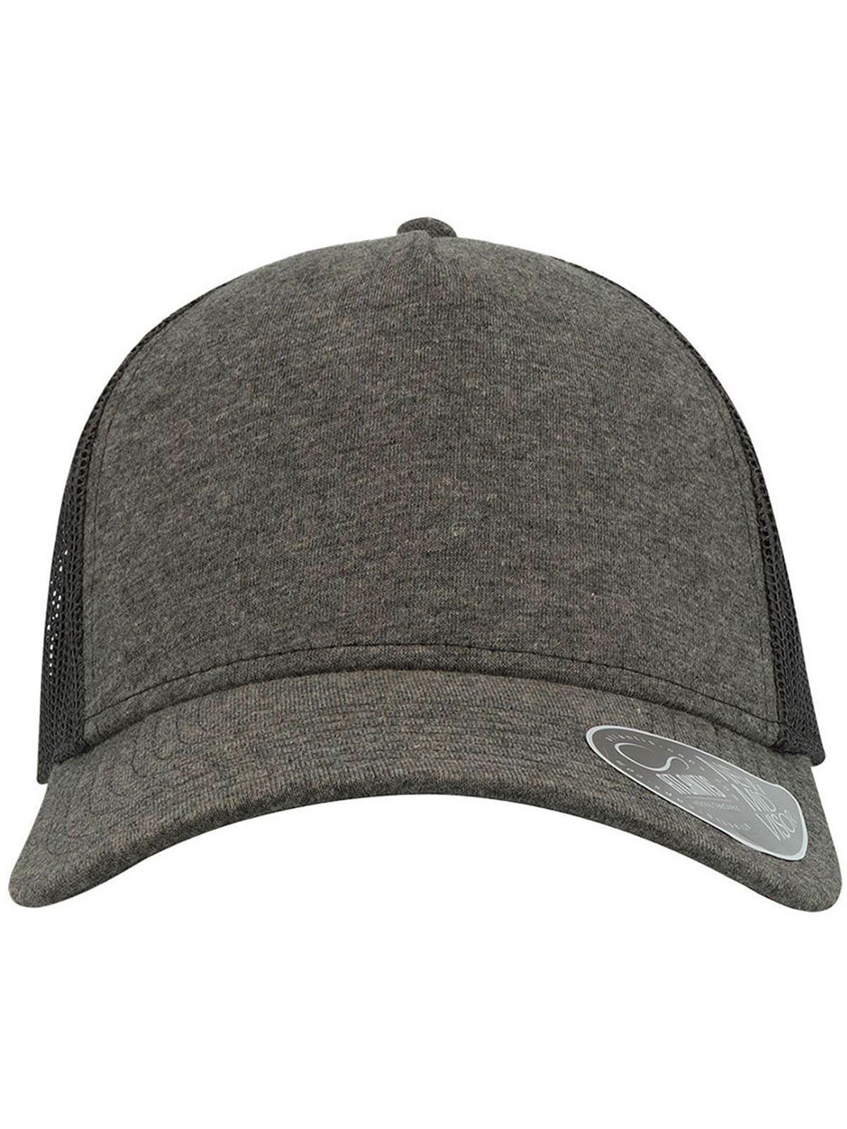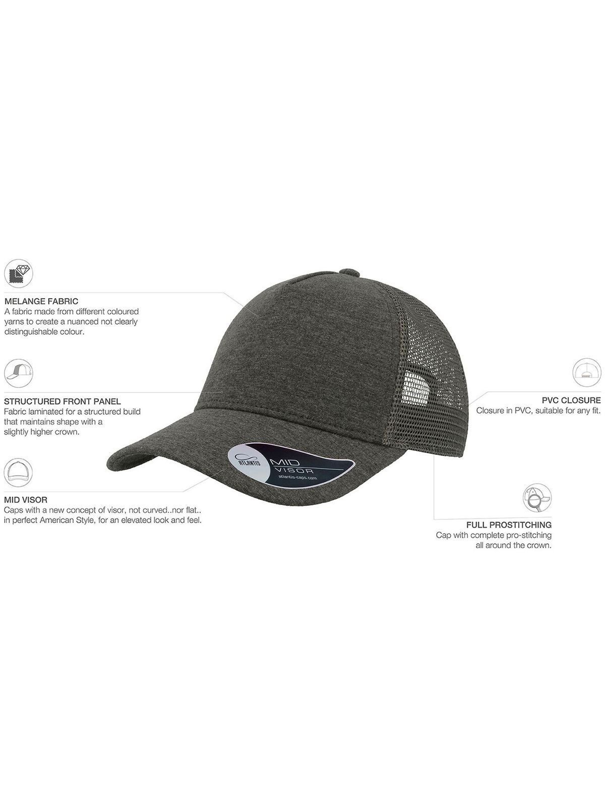50% cotton, 50% polyester. 5-panel cap with reinforced front panel and pre-curved visor with sticker. Features cotton sweatband, PVC closure, removable label, and one size fits all.