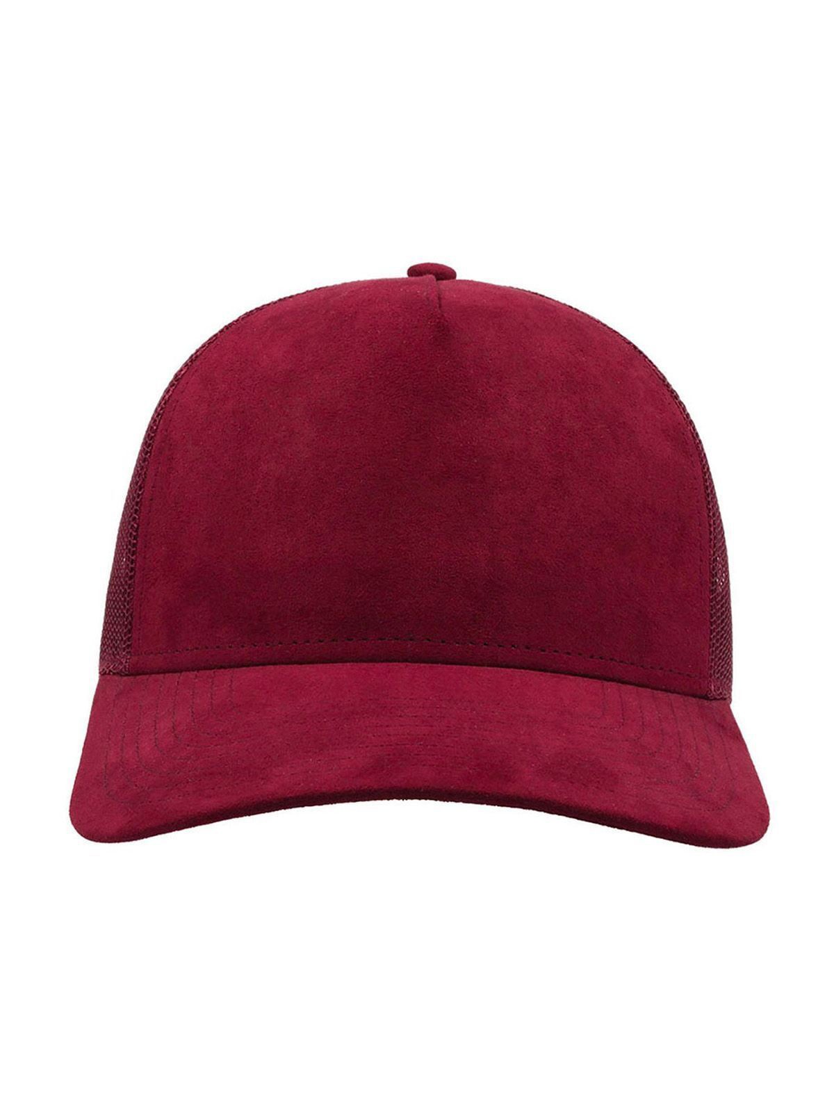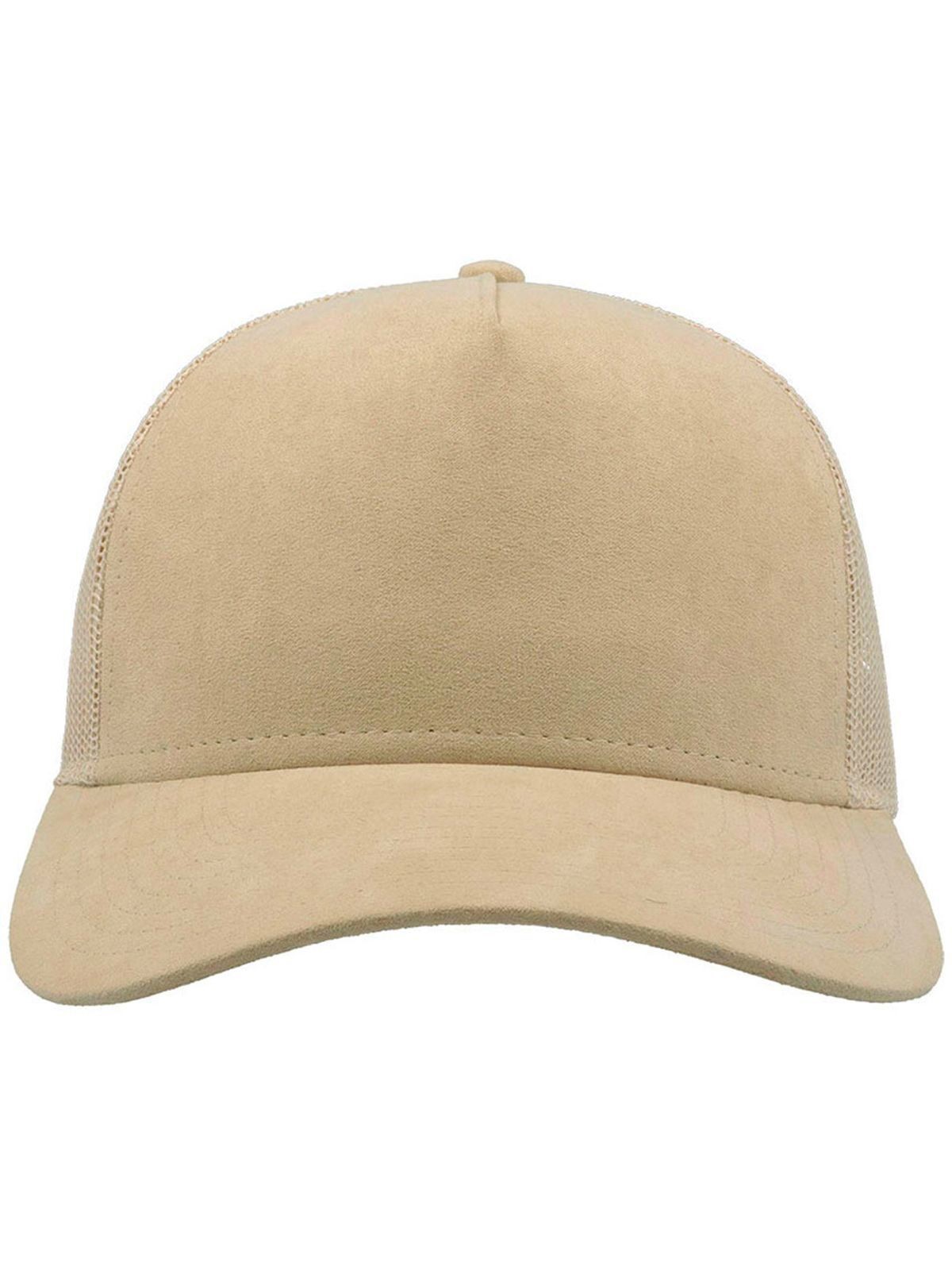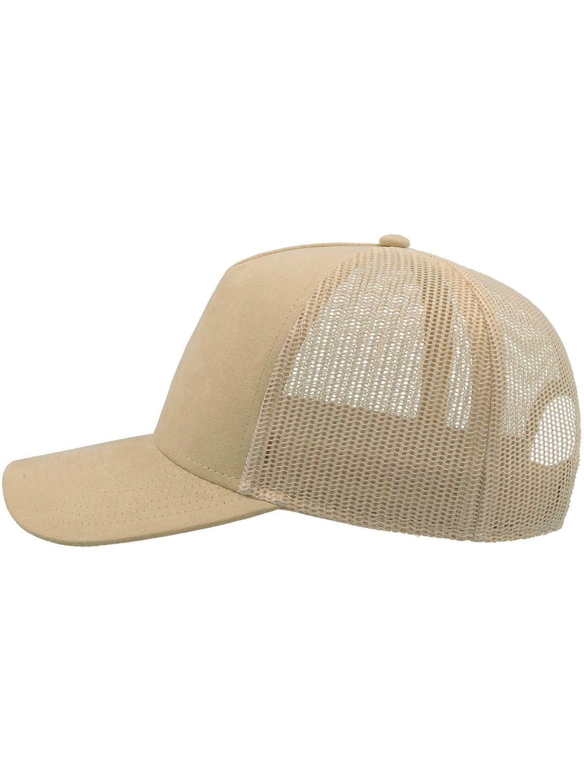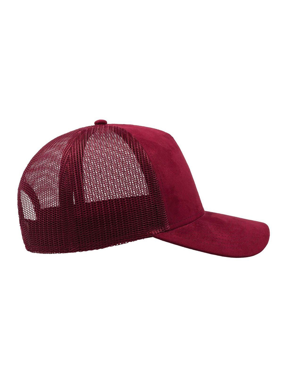 100% polyester. 5 panels cap, mid visor, back mesh, one size fits all. Removable label.