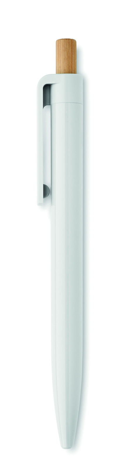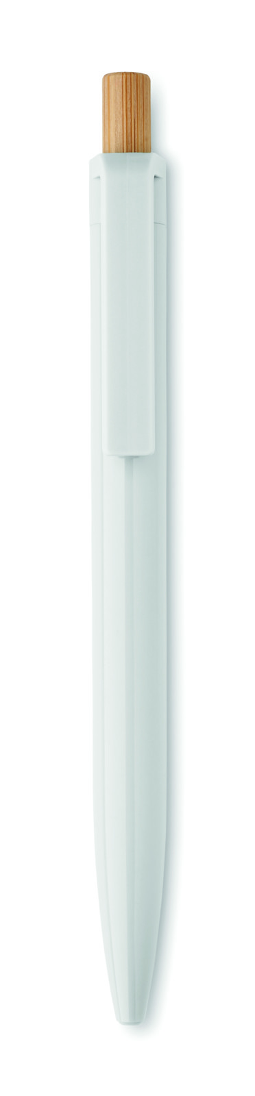 Ball pen in recycled ABS with bamboo push button. Blue ink.