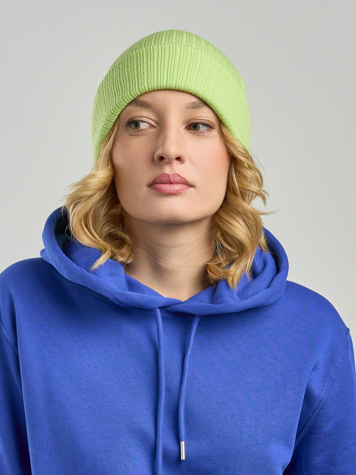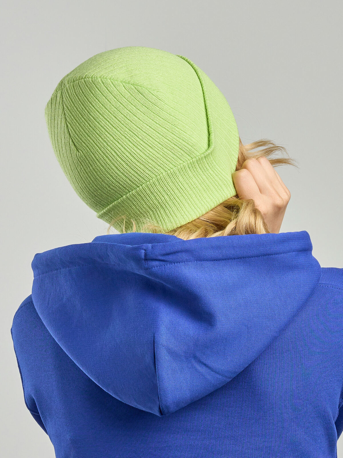 100% recycled polyester. Beanie, acrylic, weight: approx. 65g, double layer. Removable label.