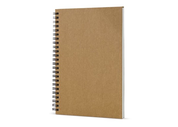 Njegova mehka papirnata platnica zagotavlja profesionalen videz in je opremljena z namenskim držalom za pisalo, ki varno pritrdi ustrezni kemični svinčnik, ki je izdelan iz recikliranega kartona in biorazgradljiva plastika. Pero je opremljeno z mehanizmom na gumb za gladko pisanje z modrim črnilom, zaradi česar je eleganten in odgovoren.