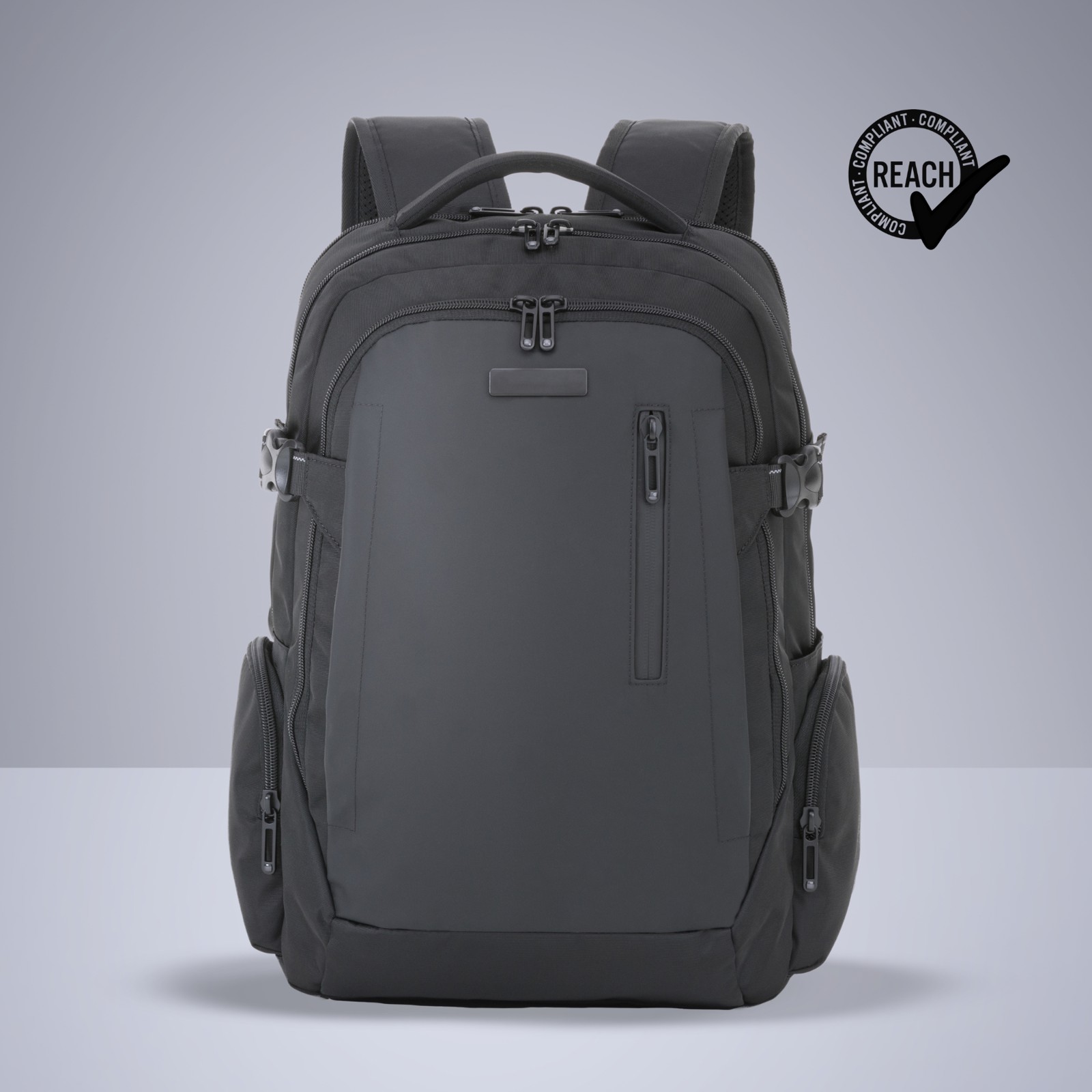 A spacious and durable backpack with the capacity of 22 liters. Features three main compartments, side zipper pockets, a front waterproof pocket, adjustable side and chest straps, and a hidden back panel zipped pocket. Webbing with reflective thread adds safety, while the high-quality lining ensures long-lasting use. REACH certified.