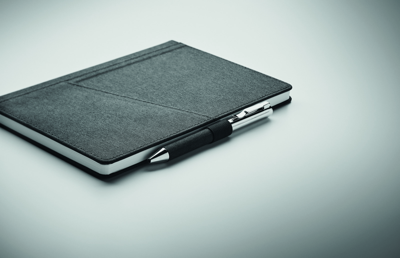 Zvezek A5 s 160 stranicami, obloženimi s smetano, z 80 g / m2 papirja. Sprednji pokrov ima prilagodljiv žep za telefon, žep za pisalo in večji žep za rokave za dokumente. Telefonski žep je širok 8 cm, kar ustreza iPhone 7 plus.