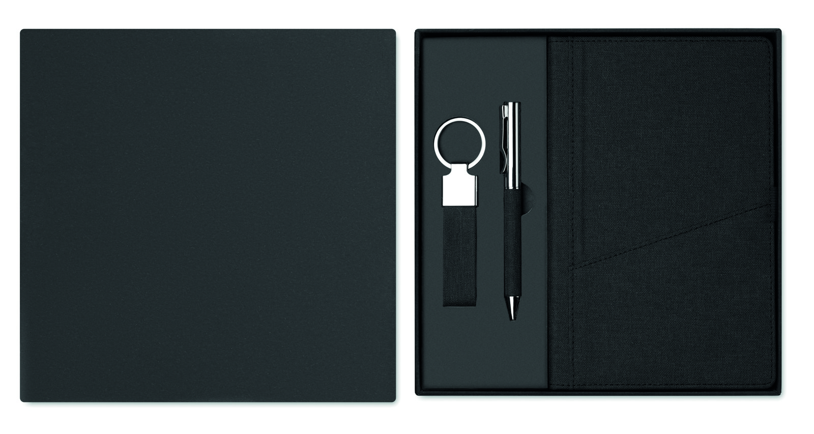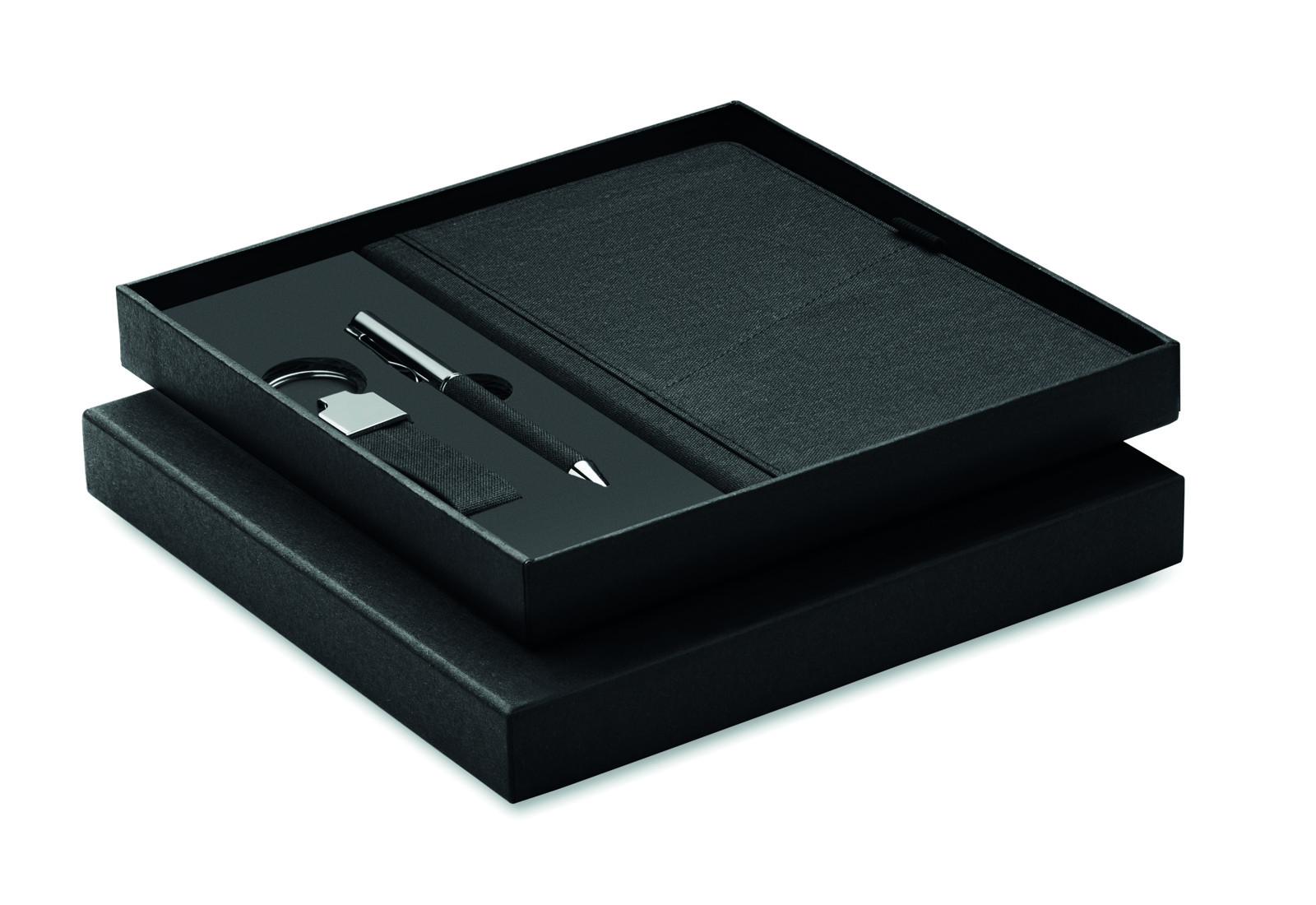 Eleganten, trajnosten in praktičen – 3-delni darilni set Scribi 4 je idealno poslovno ali promocijsko darilo za stranke in ekipe. Ta izbrani komplet vključuje visokokakovosten kemični kemični svinčnik s poliestrskimi elementi RPET, ki piše z gladkim modrim črnilom, vzdržljiv beležnik s trdimi platnicami RPET s priročnim sprednjim žepom za pametni telefon in ujemajoč se obesek za ključe iz poliestra RPET, vse to je elegantno zapakirano v prvovrstno darilno škatlo.