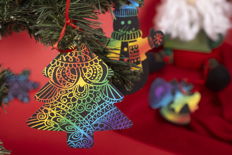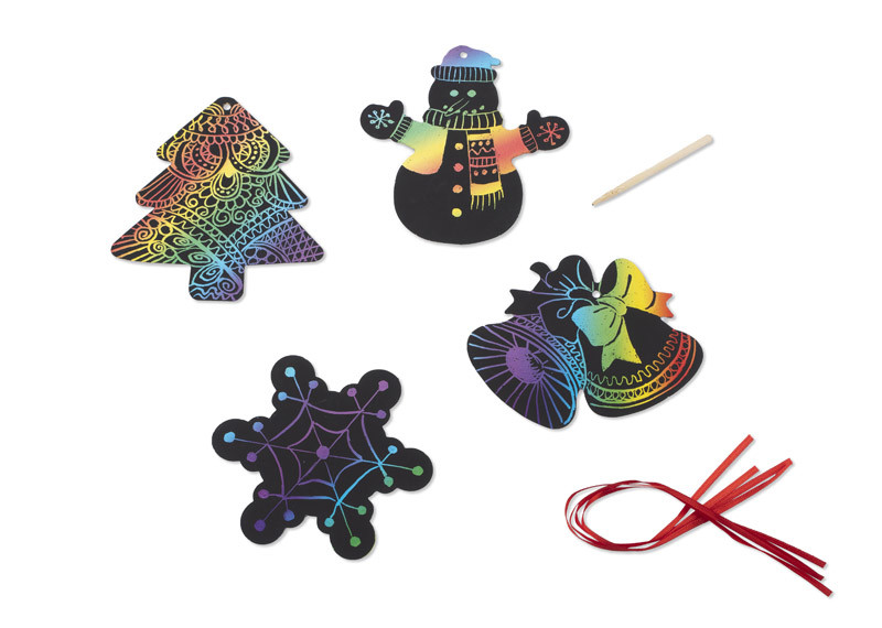 Festive set of Christmas tree hangers. With the help of a bamboo stick, you can design your own unique baubles in a simple and fun way. The set includes 4 shapes: a bell, a star, a Christmas tree, and a snowman. Made of paper. Packed in a brown envelope.