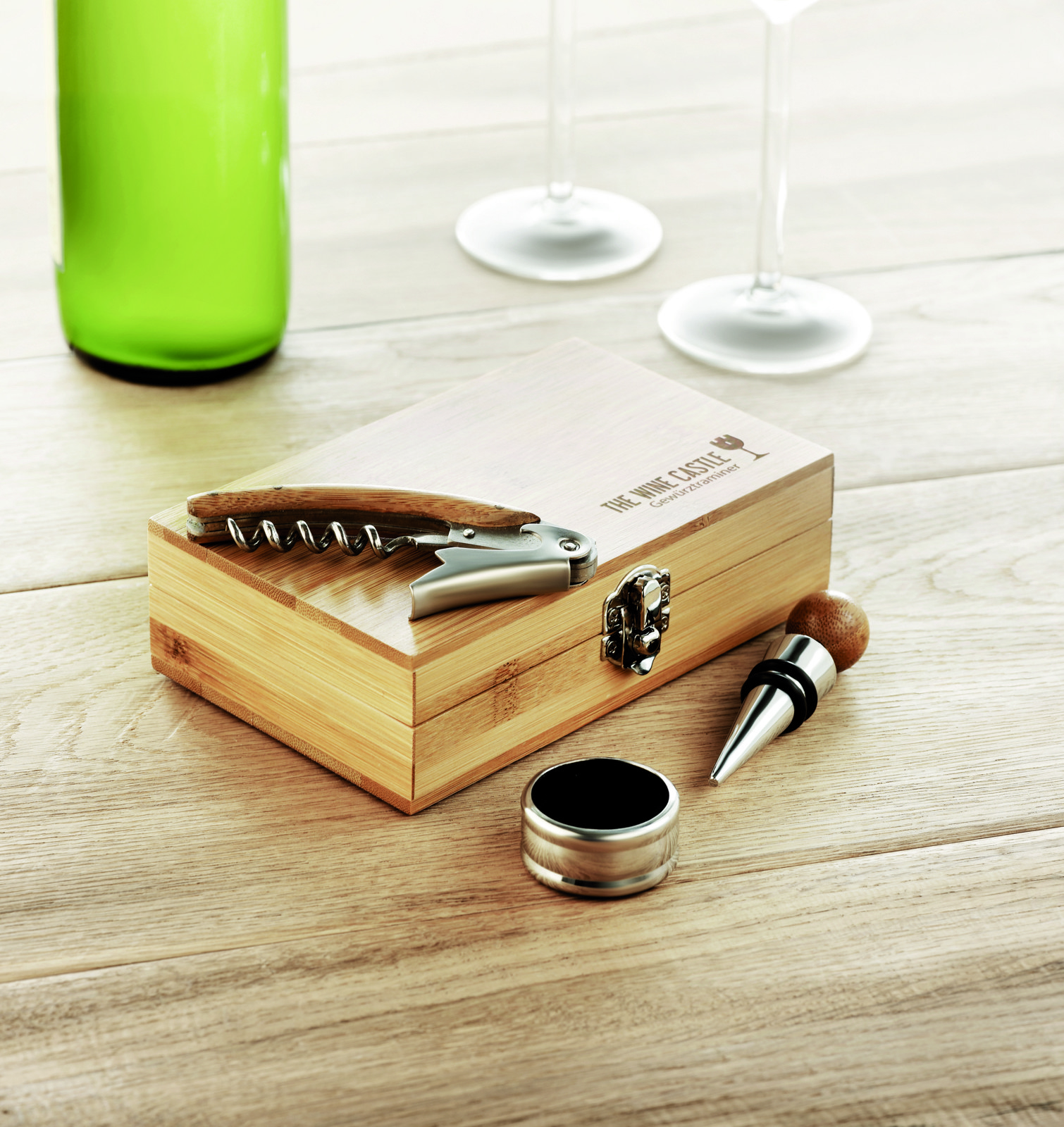 Set za vino Sonoma, škatla iz bambusa, orodje iz nerjavečega jekla