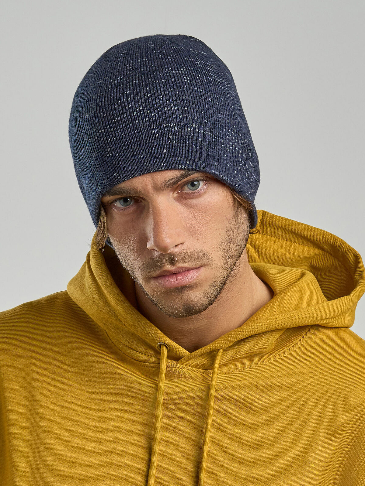 100% certified recycled polyester. Acrylic cap with reflective fibers.