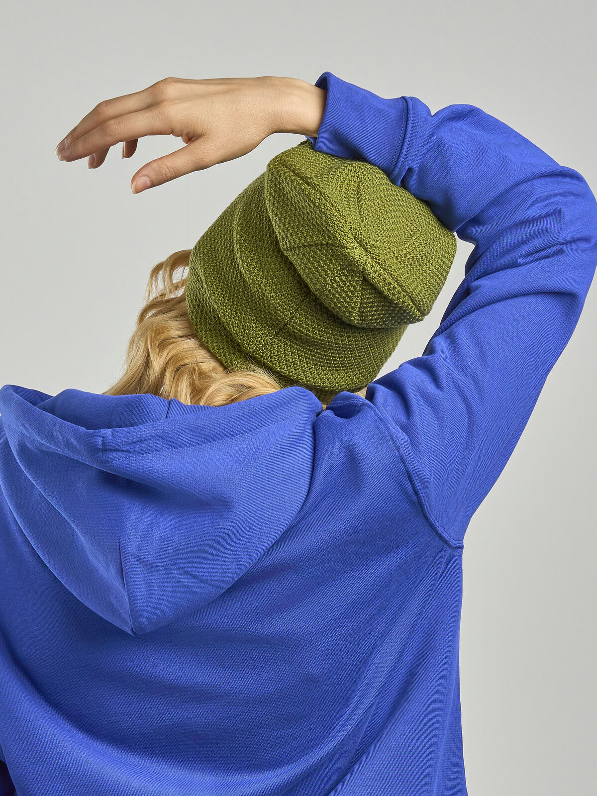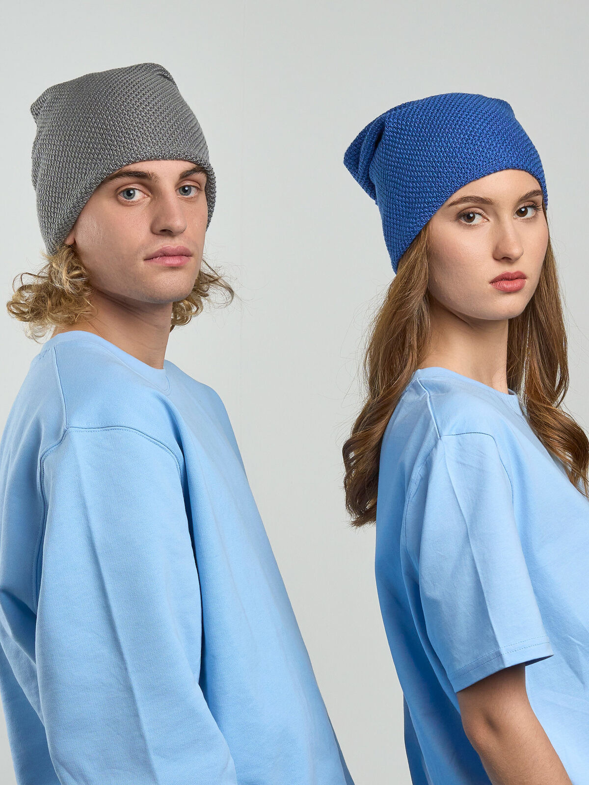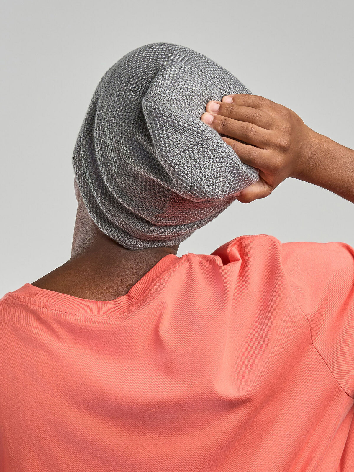 100% acrylic. Oversize beanie, 6 stitchings, double layer, one size fits all. Removable label.