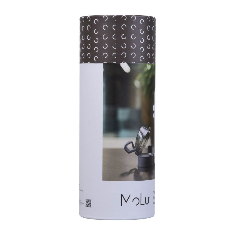 A stylish MoLu bottle crafted from recycled stainless steel, featuring double-wall vacuum insulation to keep beverages hot or cold for extended periods. The bottle has a capacity of 600 ml and is equipped with a practical click lid for ease of use. Functional, high-quality, and perfect for use on the go. Presented in exlusive gift packaging with 2-year warranty.