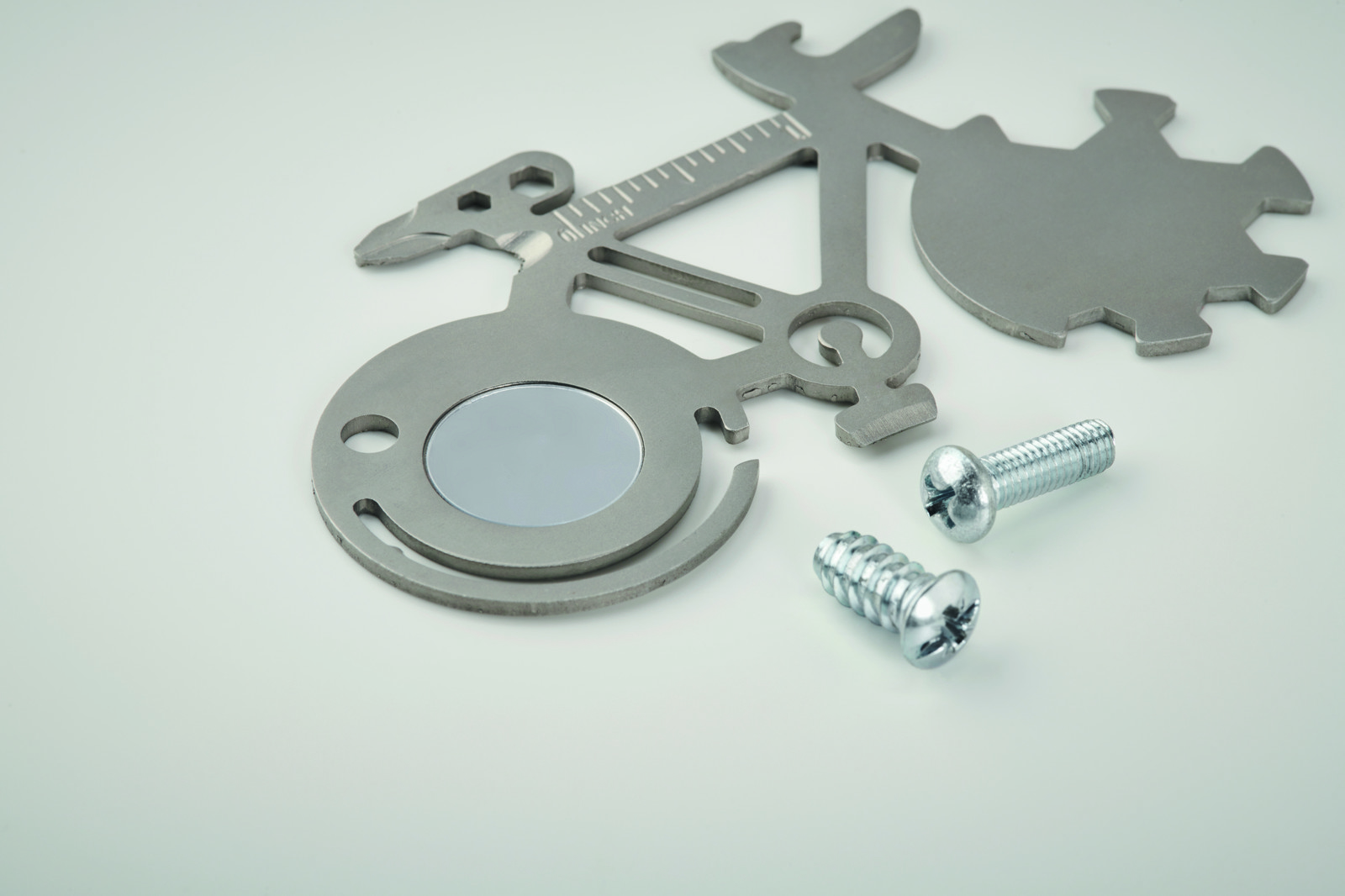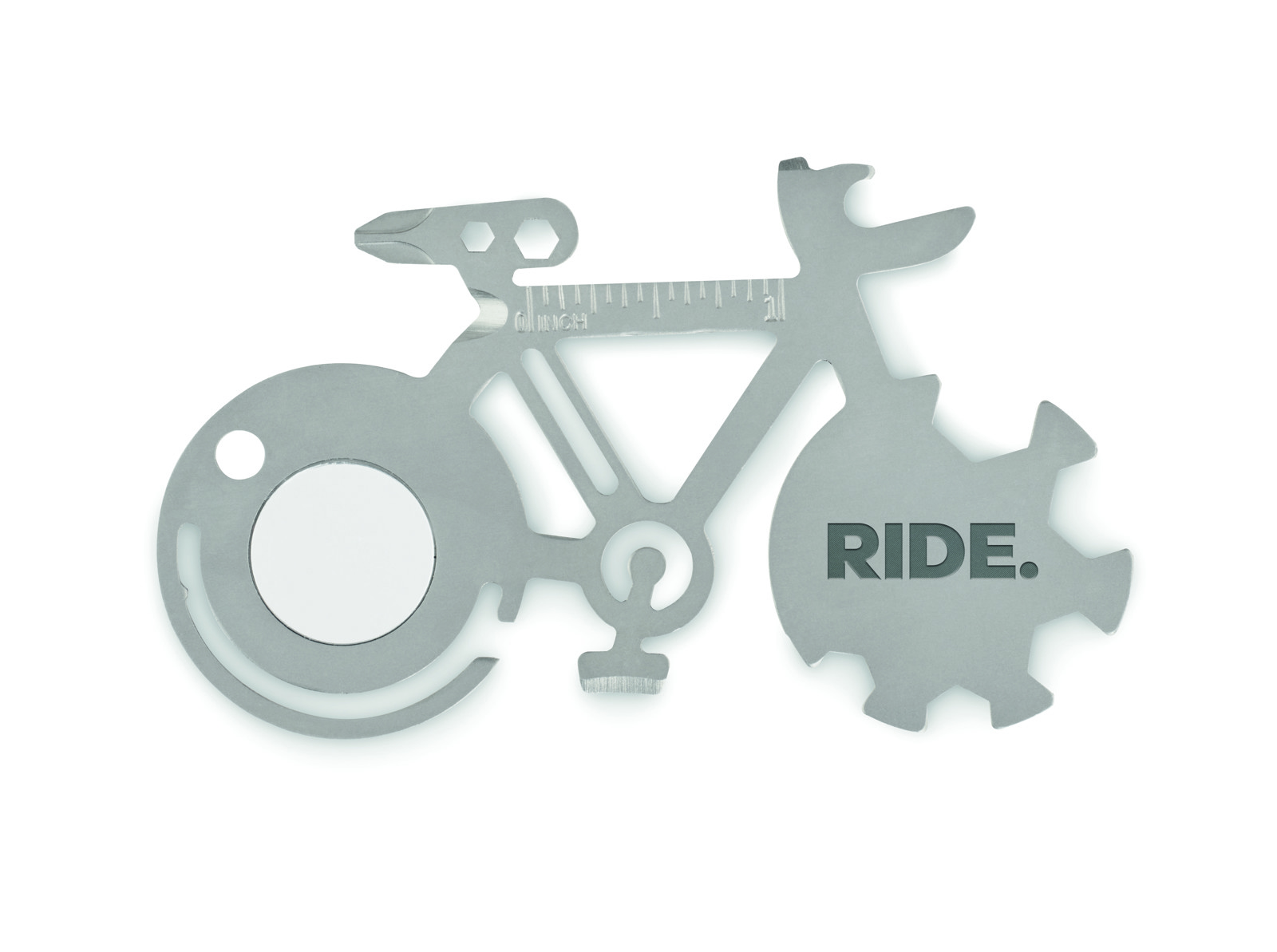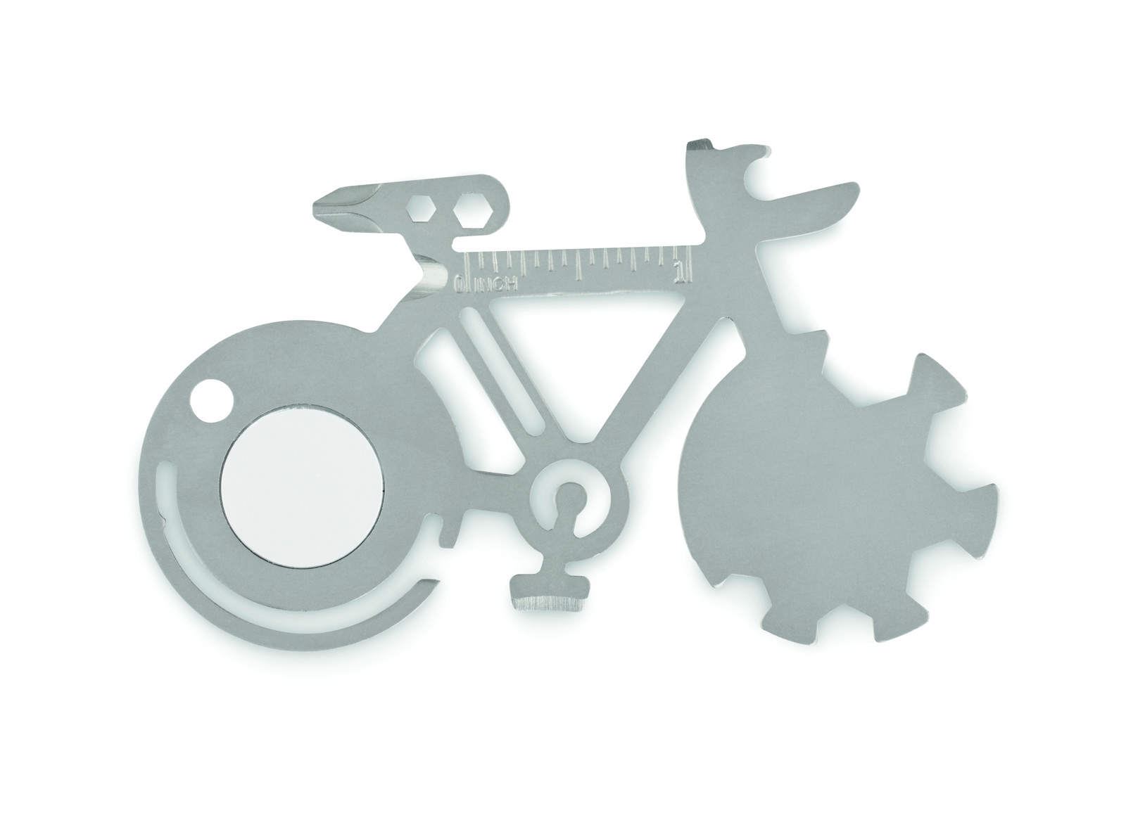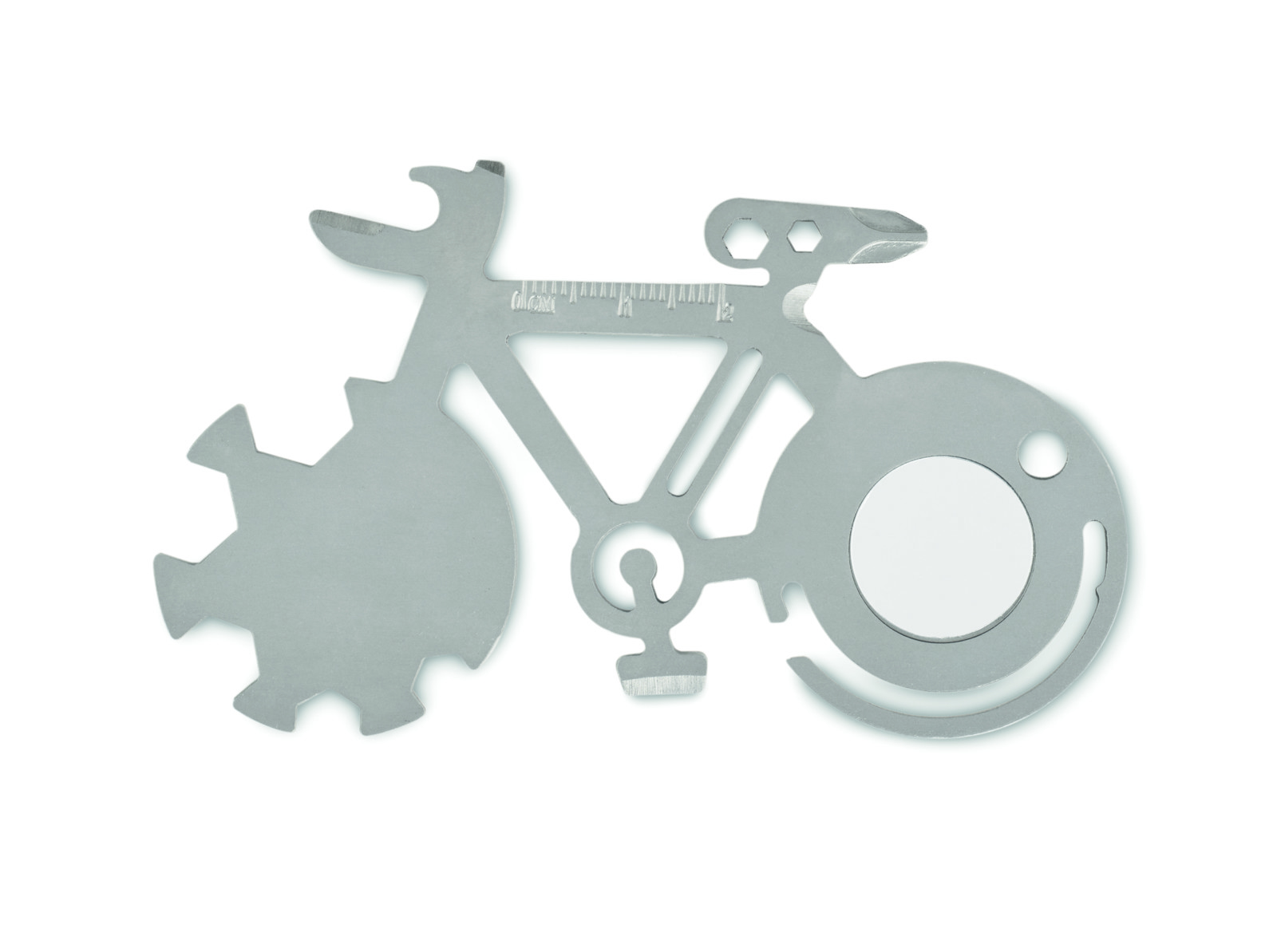 Odkrijte kompaktno vsestranskost večnamenskega orodja Bitool iz nerjavečega jekla — nepogrešljivega pripomočka za vašo naslednjo promocijo podjetja ali nagradno igro. To inovativno večnamensko orodje 11 v 1, izdelano iz vzdržljivega nerjavečega jekla, je domiselno oblikovano kot kolo in vsebuje praktična orodja, vključno z odpiračem za steklenice, nožem, ravnilom, križnim izvijačem in drugimi.