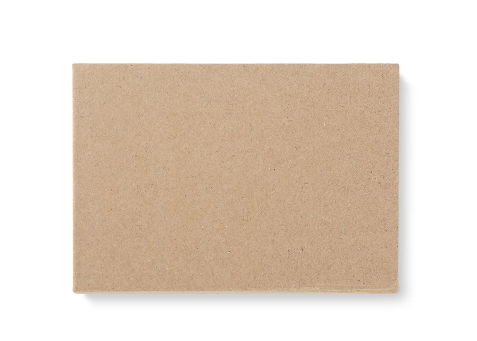 The MEFO box is made of brown paper. It serves as a desk toolbox. It has space for pens or other selected utensils, sticky notes for taking notes, as well as space for a business card.
