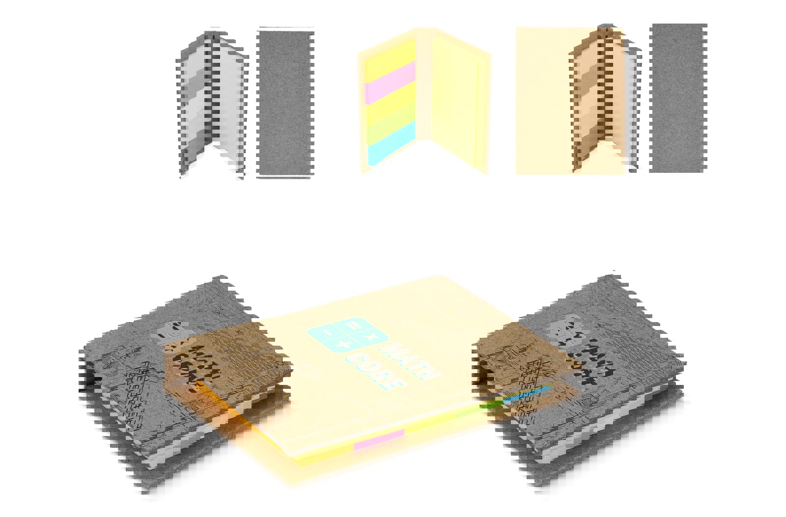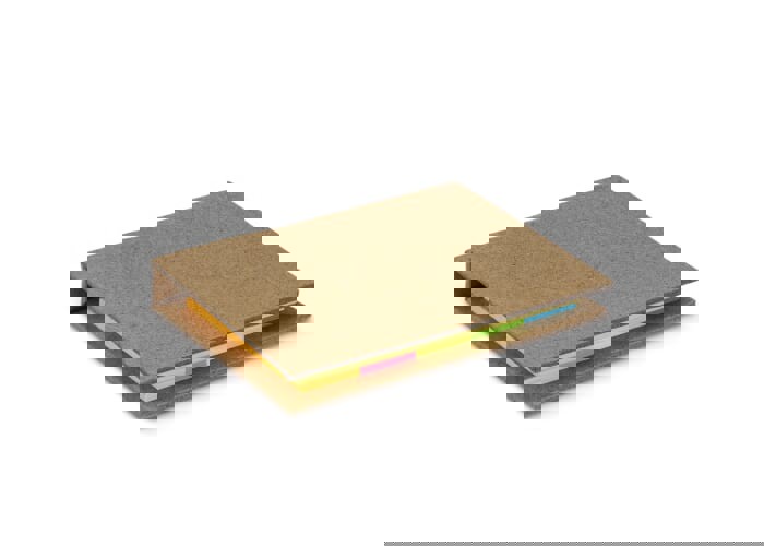 This sustainable booklet, made from craft paper, contains two sizes of sticky notes: 50 sheets of 75 x 49mm notes and 125 sheets of 49 x 14mm notes (25 sheets each in five colors). It’s a practical accessory for organizing thoughts and reminders.
