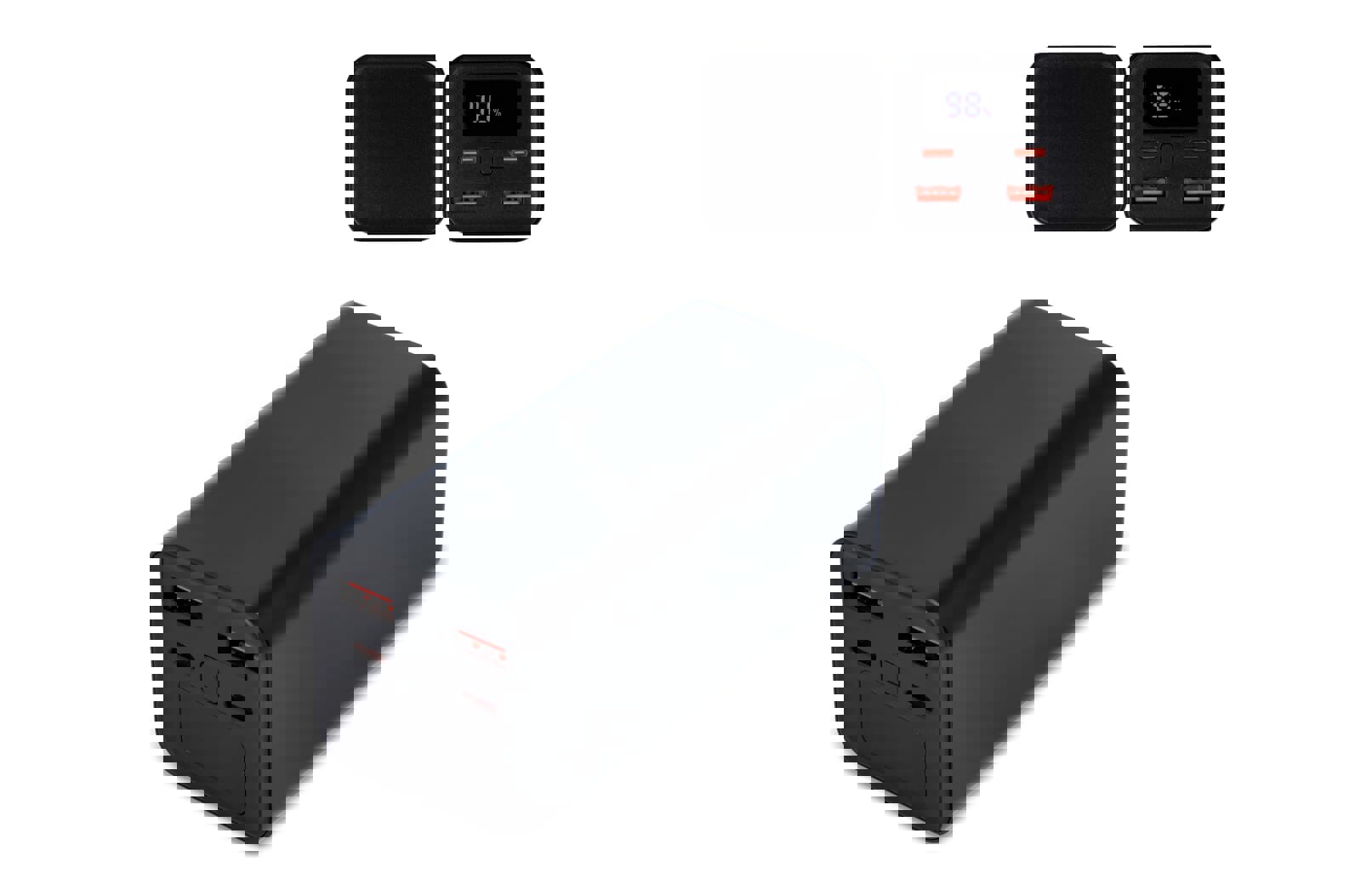 Opremljen z veliko zmogljivo 10.000 mAh litij-polimersko baterijo, lahko pametni telefon napolni do petkrat z enim polnjenjem. Dvojna izhodna vrata USB (5 V/2 A in 5 V/1 A) in možnosti dvojnega vhoda (standard in Type-C) dodajajo vsestranskost in zagotavljajo hitrejše polnjenje. LED-indikatorji jasno prikazujejo preostalo raven baterije, tako da uporabniki točno vedo, kdaj je čas za polnjenje.