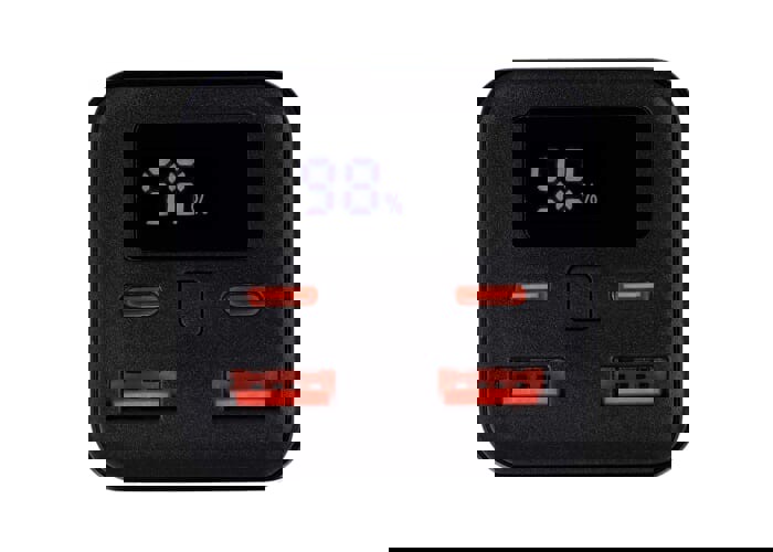 This powerful 20.000mAh power bank features a robust 65W output, making it ideal for charging laptops on the go. It includes two USB-C ports (60W & 65W max) and two USB-A ports (each 18W max), with a total max output of 65W for all ports combined. The power bank charges quickly and safely, protected against overload, over-discharge, short circuit, and over-voltage. With its high capacity and versatile charging options, it's the perfect companion for travel and outdoor adventures.