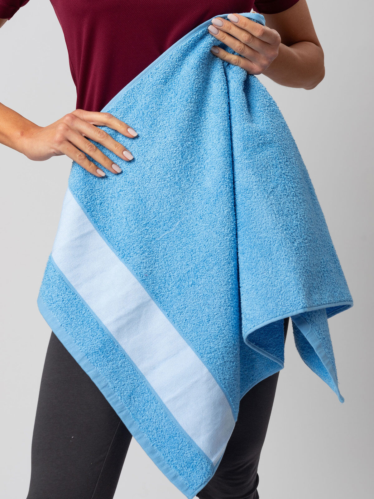 100% cotton. Polyester band cloth ideal for printing. Soft to the touch and absorbent. Types of customization: sublimation printing. 3 dimensions: 30x50 cm - edge 7 cm 50x100 cm - edge 8 cm 70x140 cm - edge 9 cm.