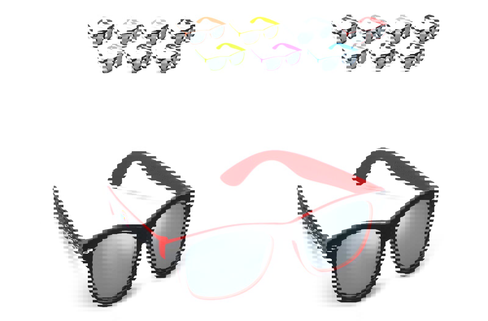 Stylish sunglasses with a trendy two-tone frame and eye-catching mirror lenses. UV400 filter. A modern choice for standout promotions and events.