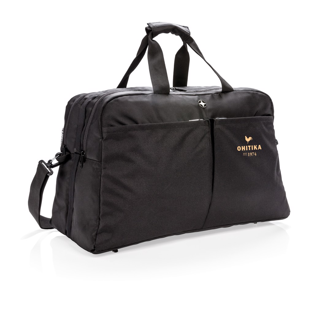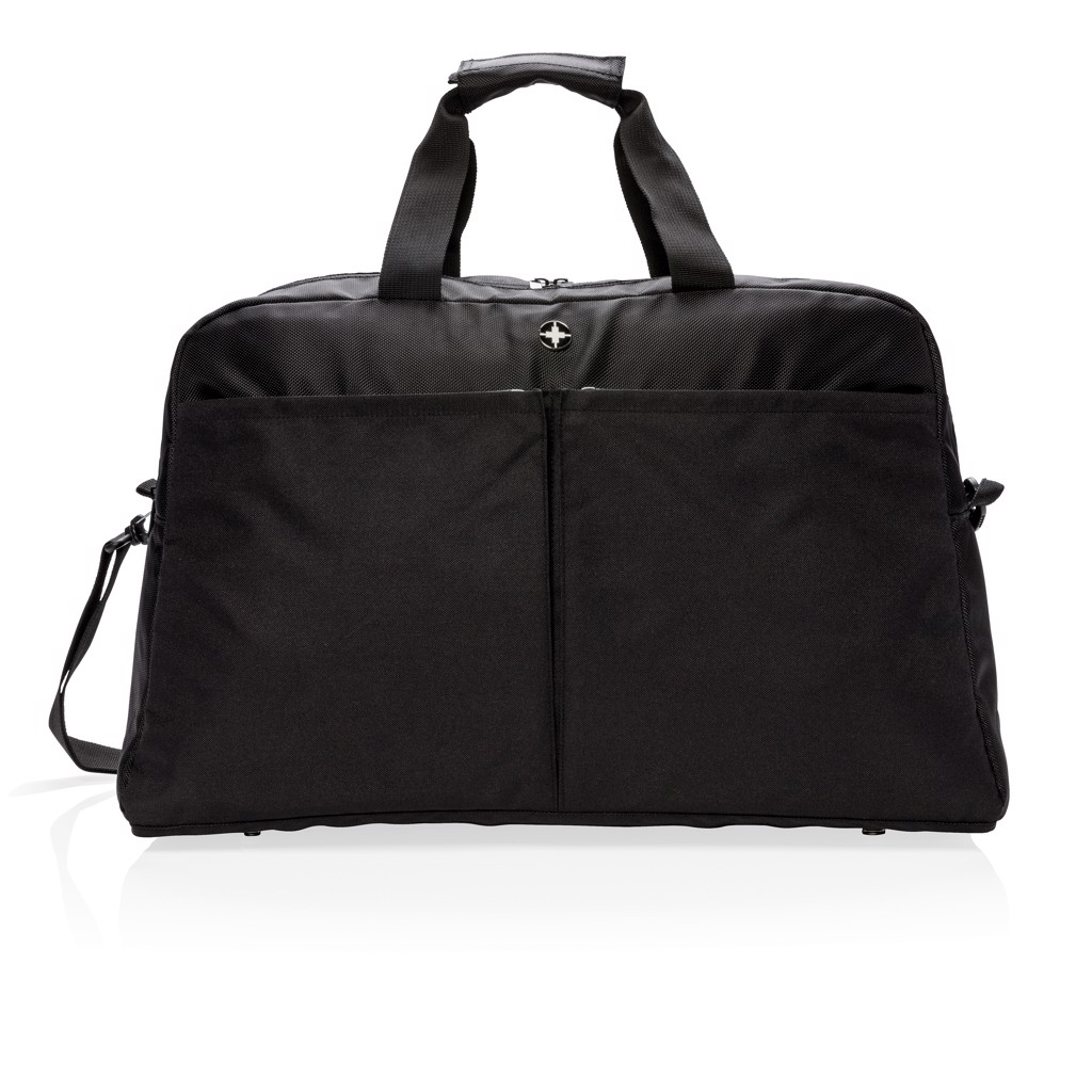 Idealen kot poslovno ali promocijsko darilo, njegova vrhunska funkcionalnost in eleganten dizajn ponujata praktičnost in učinek blagovne znamke. Podprta s strani zaupanja vredne blagovne znamke Swiss Peak in izdelana iz materialov brez PVC-ja, ta potovalna torbica tehta le 750 g in je dovolj kompaktna za enostaven transport z merami 590 x 275 x 300 mm.