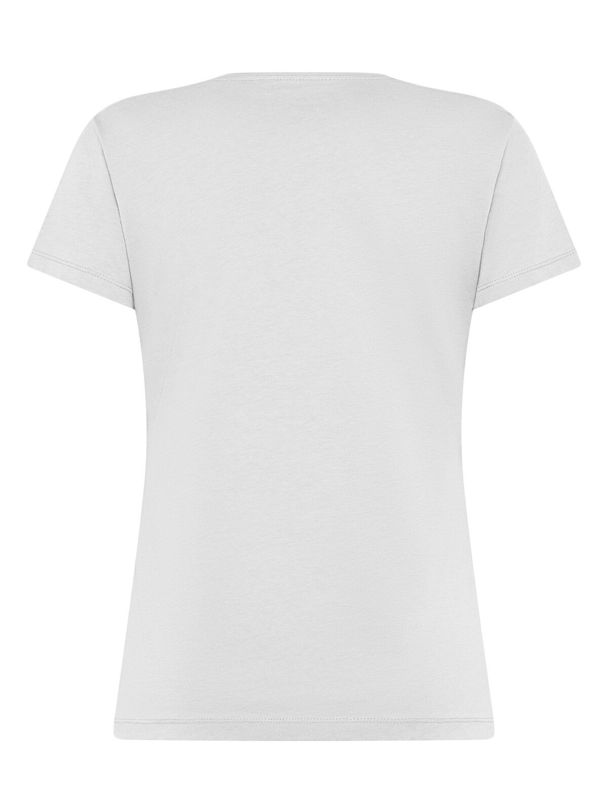 100% organic cotton in conversion. Women's short-sleeved T-shirt made from environmentally friendly cotton, crew neck with reinforcement tape and soft edging, fitted construction with side seams, modern fit, soft fabric treated with enzymes. Woven size label at neck and tear-off side label with logo, composition and washing instructions. Composition Grey Heather: 90% organic in conversion cotton, 10% viscose.