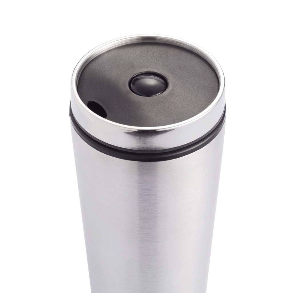 Njegov vgrajen ročaj je idealen spremljevalec na potovanjih, saj zagotavlja, da bodo vaše tople ali hladne pijače med prevozom na delo in domov. Zunanjo lupino, izdelano iz trpežnega polipropilena in nerjavečega jekla, je tudi enostavno razstaviti za recikliranje, zaradi česar je odgovorno in trajnostno promocijsko darilo. Popolnoma brez BPA in zasnovana za ročno pranje, ta skodelica odraža sodobne vrednote tako v uporabnosti kot v skrbi za okolje.