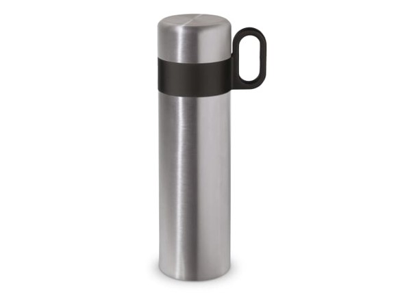 Double wall vacuum insulated bottle from the 'Flow' series. The mug is 100% leak-free and easy to carry. The cap serves as a mug. The inner and outer wall are made of high quality stainless steel. Drinks will stay warm up to 12 hours and/or cold up to 24 hours. Designed by Toppoint.