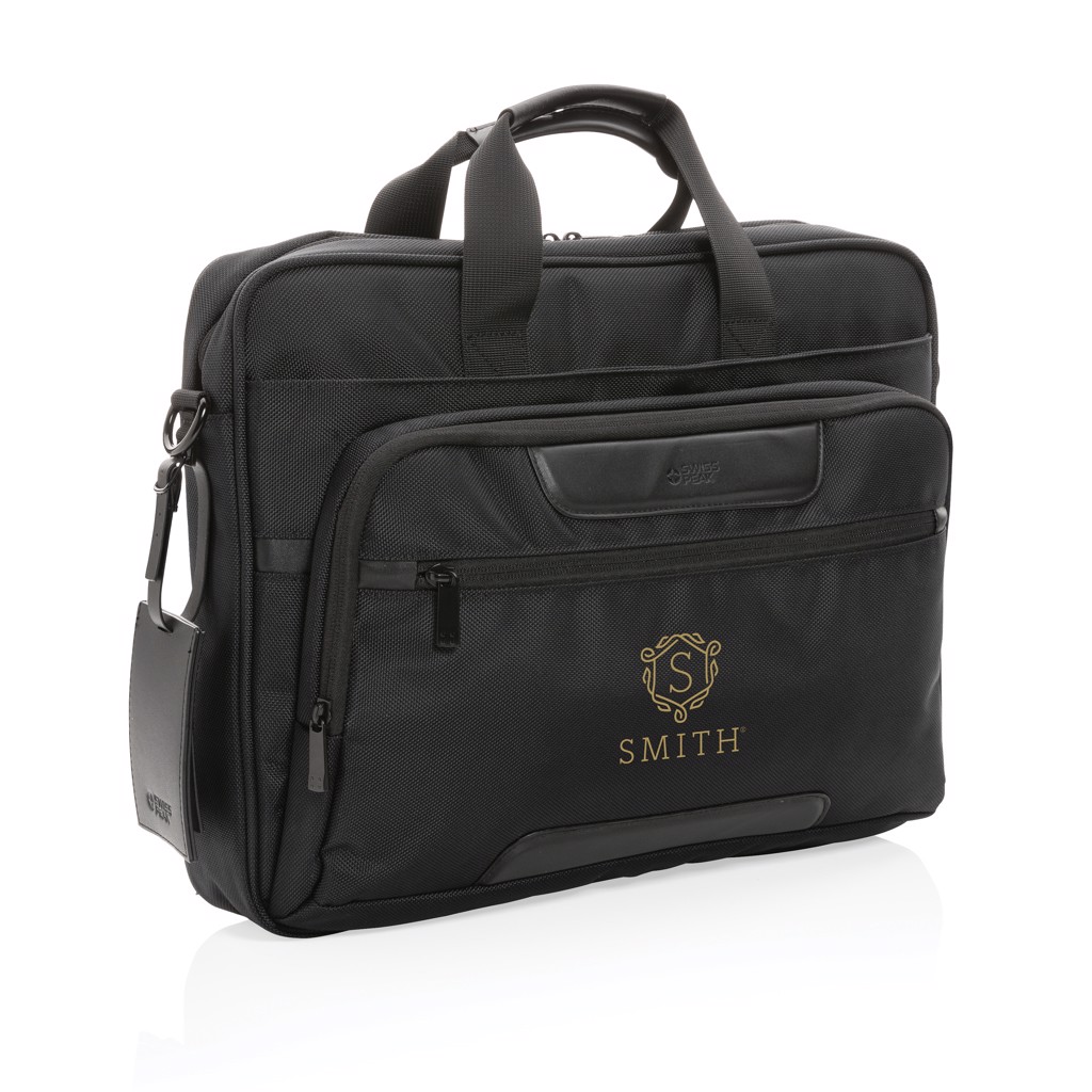 S samo 970 g in skrbno premišljenimi merami (420 x 305 x 95 mm) je ta vrhunska torba Swiss Peak odgovoren in eleganten način za predstavitev vrednot vaše blagovne znamke z odličnim promocijskim darilom.