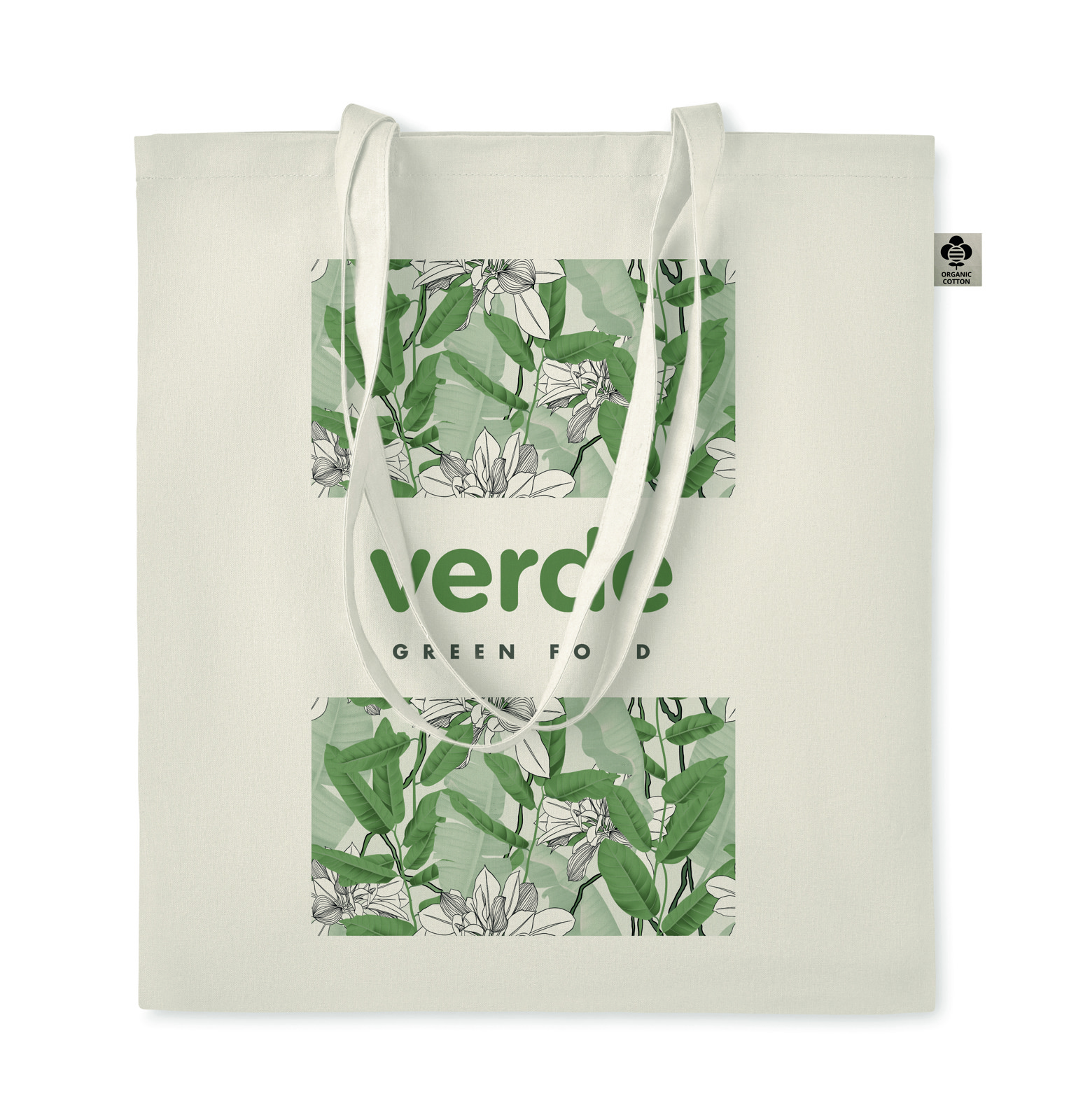 Praktična, okolju prijazna in idealna za vsakodnevno uporabo – nakupovalna torba Zimde Organic Cotton je odlična izbira za vaše naslednje promocijsko ali poslovno darilo. Strokovno izdelana iz 100 % naravnega organskega bombaža (140 gr/m²) ta visokokakovostna velika torba združuje trajnost in vsakodnevno priročnost. Ne glede na to, ali shranjuje živila, dokumente ali dnevne potrebščine, njegove velikodušne dimenzije 420 mm širine in 380 mm dolžine ponujajo dovolj prostora za različne uporabe.