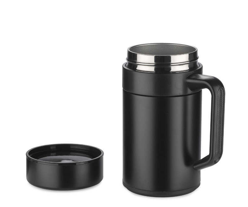 The BOSSKI thermal mug is a mug that is very comfortable to hold with a large plastic handle. It is made of high-standard stainless steel, has two walls separated by a vacuum, so it maintains the temperature of the drink for up to 12 hours. The cup opens by unscrewing it. It has a silicone gasket, which prevents the drink from spilling out.