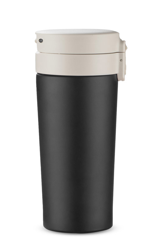 Njegov vgrajen ročaj je idealen spremljevalec na potovanjih, saj zagotavlja, da bodo vaše tople ali hladne pijače med prevozom na delo in domov. Zunanjo lupino, izdelano iz trpežnega polipropilena in nerjavečega jekla, je tudi enostavno razstaviti za recikliranje, zaradi česar je odgovorno in trajnostno promocijsko darilo. Popolnoma brez BPA in zasnovana za ročno pranje, ta skodelica odraža sodobne vrednote tako v uporabnosti kot v skrbi za okolje.
