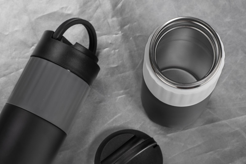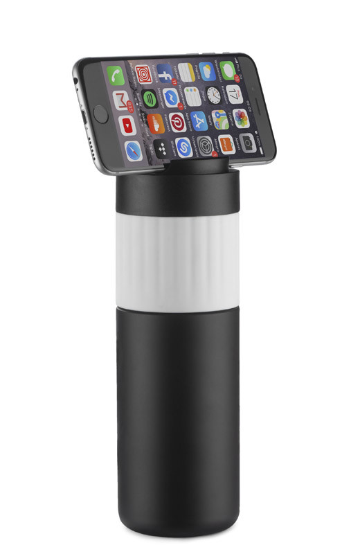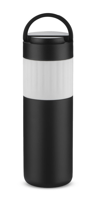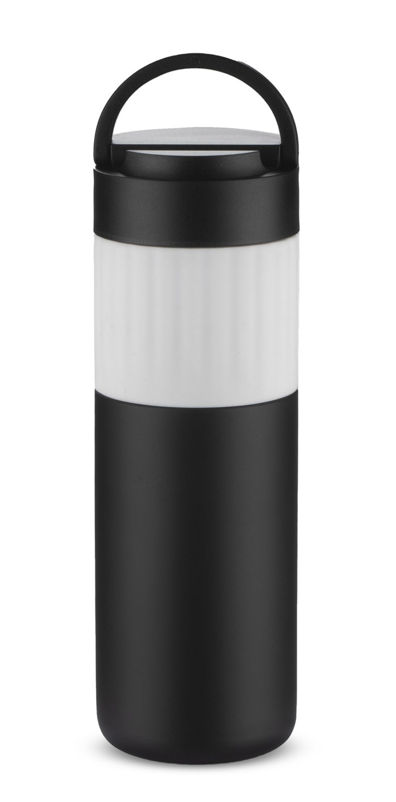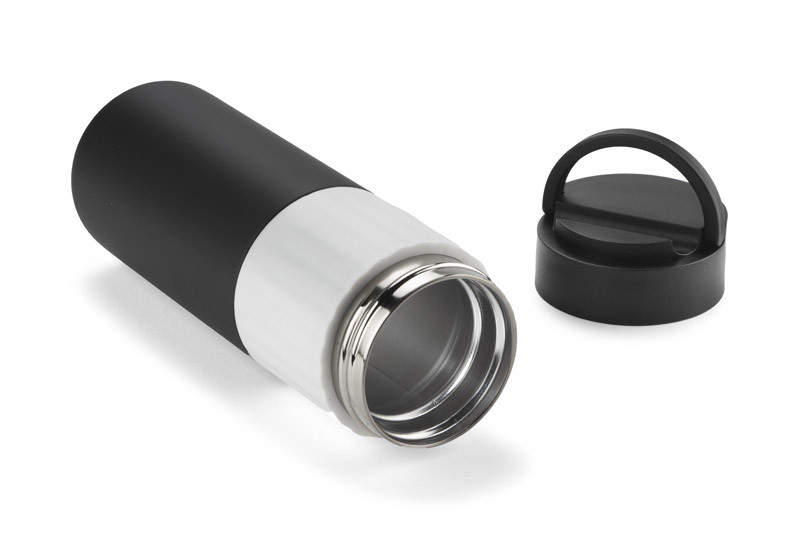The HOLDEN thermal bottle, thanks to the vacuum between the walls, keeps the temperature for approx. 12 hours. It is made of 304 stainless steel. It has a comfortable silicone grip. The cover is made of plastic and can be used as a telephone stand.