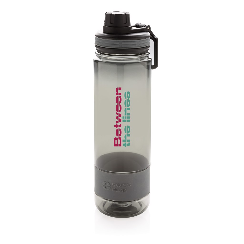 Ostanite osveženi in promovirajte svojo blagovno znamko s Swiss Peak Tritan Bottle — elegantno in vzdržljivo rešitvijo, zasnovano za aktiven življenjski slog. Ta steklenička, izdelana iz visokokakovostnega tritana in polipropilena, ni le brez bisfenola A, ampak ponuja tudi velikodušno prostornino 750 ml, idealno za pohodništvo, telovadbo ali dolge delovnike. Izdelana z zasnovo, ki ne pušča in praktičnim silikonskim obročkom za boljši oprijem, zagotavlja nemoteno in udobno izkušnjo pitja, kamor koli že greste.