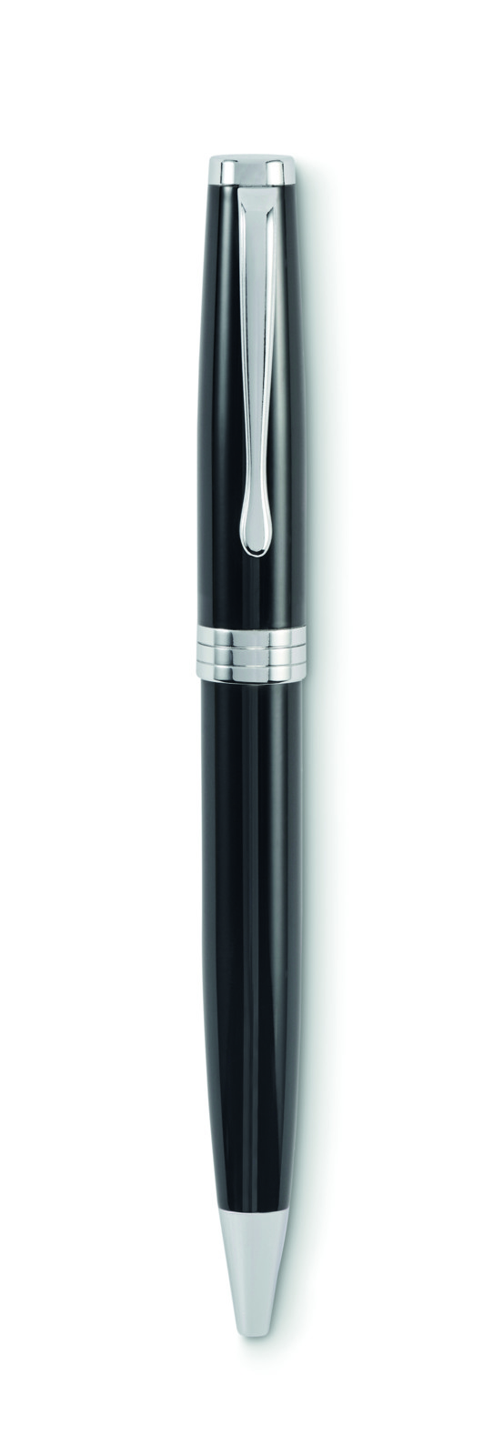Twist ball pen in recycled stainless steel barrel. Blue ink. Presented in gift box.