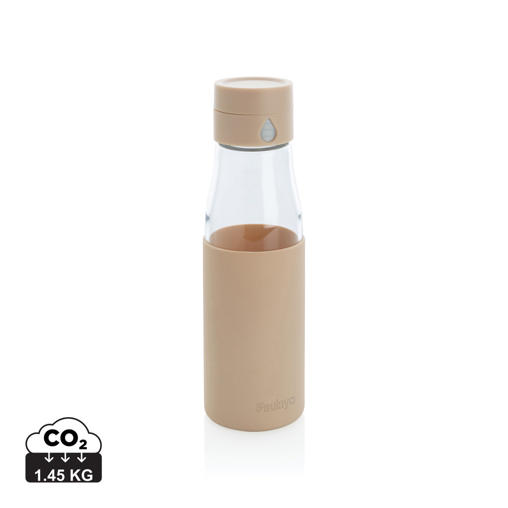 Ukiyo glass hydration tracking bottle with sleeve - Brown