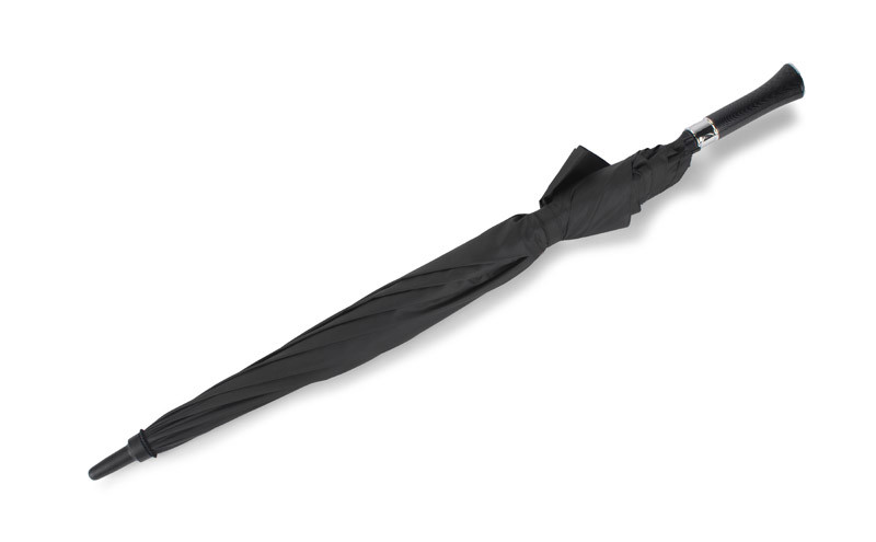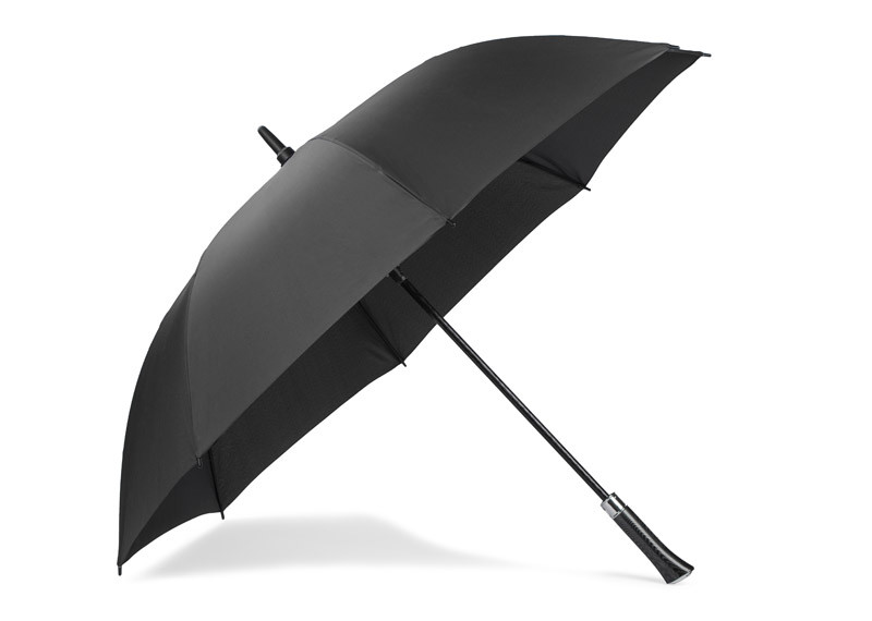 69 cm samodejno odprt dežnik v 190T pongeeju s črno prevlečeno kovinsko gredjo in rebri. Črni plastični nasveti. Raven črn EVA ročaj. Ročno zapiranje.
