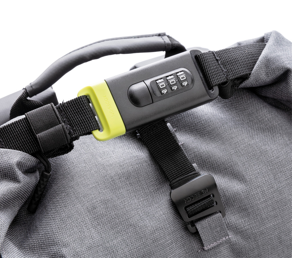 Njena izjemna lastnost je kombinacijska ključavnica, ojačana z jeklom, ki zavaruje glavni predal na zvitku in omogoča tudi zaklepanje torbe na fiksne predmete – kot nalašč za varno potovanje v prometnih okoljih. Skriti žepi, zaščiteni z RFID na zadnji plošči in naramnici varujejo vaše osebne podatke, medtem ko notranji podloženi predelki podpirajo prenosnike do 15,6" in tablične računalnike do 12,9".