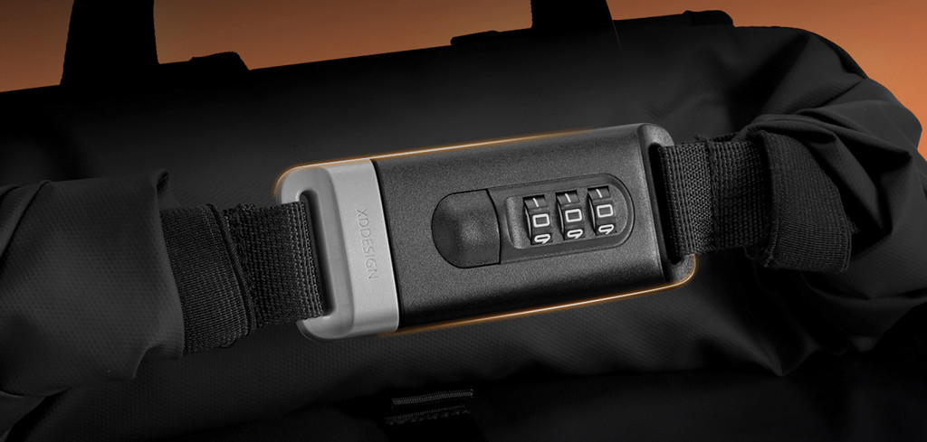 Njena izjemna lastnost je kombinacijska ključavnica, ojačana z jeklom, ki zavaruje glavni predal na zvitku in omogoča tudi zaklepanje torbe na fiksne predmete – kot nalašč za varno potovanje v prometnih okoljih. Skriti žepi, zaščiteni z RFID na zadnji plošči in naramnici varujejo vaše osebne podatke, medtem ko notranji podloženi predelki podpirajo prenosnike do 15,6" in tablične računalnike do 12,9".