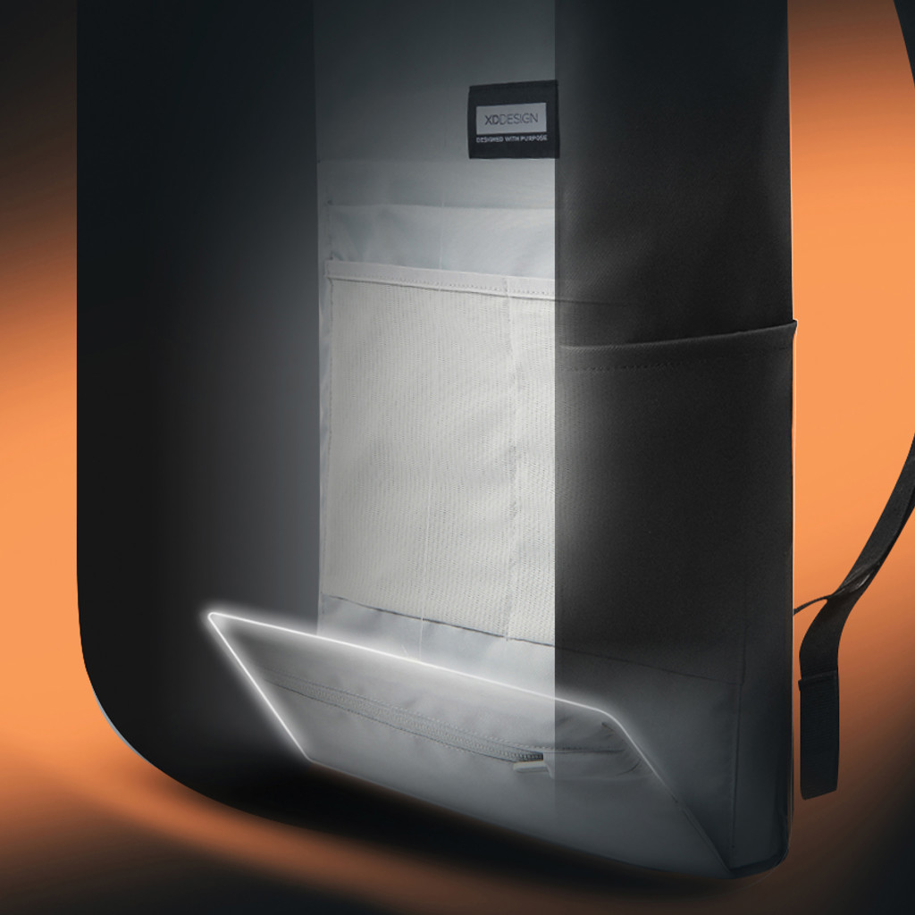Ostanite povezani in organizirani na poti z vgrajenimi vrati za polnjenje USB, podloženimi predelki za 17-palčni prenosni računalnik in 12,9-palčni tablični računalnik in ergonomski prostor za shranjevanje za vsakodnevne potrebščine. Zasnovan za priročnost, vključuje trak za prtljago in osvetljene varnostne trakove za izboljšano vidljivost po mraku.